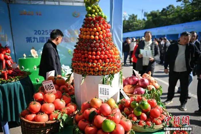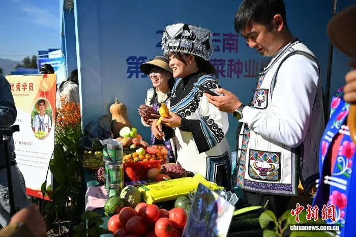 12月9日,2025云南·元谋第九届蔬菜种业博览会在云南省楚雄彝族自治州元谋县开幕,百余家知名种业、农资、农机、种植企业集中亮相。图为展位上的展品吸引观众。中新社记者 刘冉阳 摄