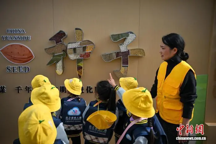 12月9日,2025云南·元谋第九届蔬菜种业博览会在云南省楚雄彝族自治州元谋县开幕,百余家知名种业、农资、农机、种植企业集中亮相。图为小朋友在老师带领下参观。中新社记者 刘冉阳 摄