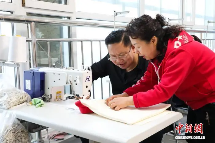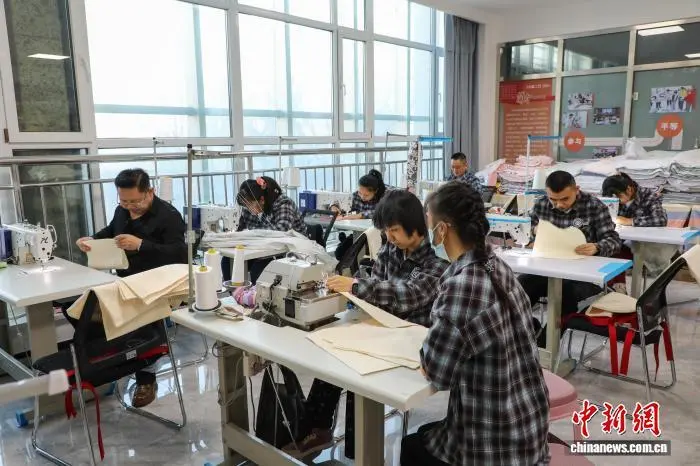 12月10日,青海省西宁市城东区“智爱共富工坊”内,心智障碍劳动者进行缝纫工作。作为心智障碍群体的辅助就业基地,74名心智障碍者在工坊从事裁剪、缝纫等工作,所生产的产品通过认购、义卖等渠道推向市场。中新社记者 马铭言 摄