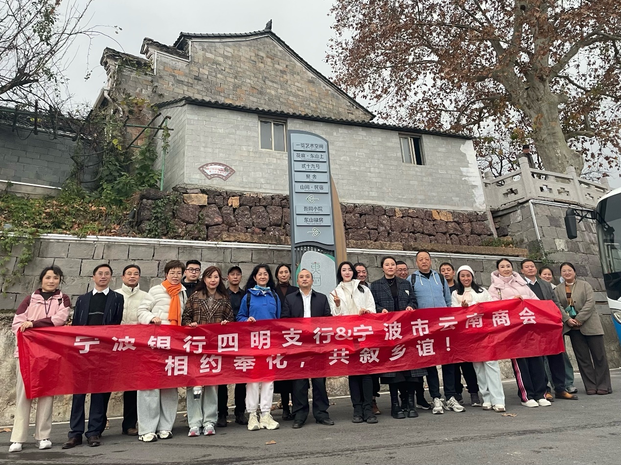 12月13日,宁波市云南商会联合宁波银行庄桥新城支行、宁波鼎程国际旅行社有限公司共同组织会员代表走进东山村,开展了一场以"乡愁"为纽带、以乡村振兴为目标的深度交流活动。商会名誉会长汪虹、执行会长高立恒、党支部副书记顾敏、执行秘书长金智祥等核心班子成员,与东山村乡村CEO胡亮玉、宁波银行四明支行行长李昆等齐聚一堂,在品味东山美食、感受一览咖啡文化的同时,共商乡村振兴大计,探索共同富裕新路径。