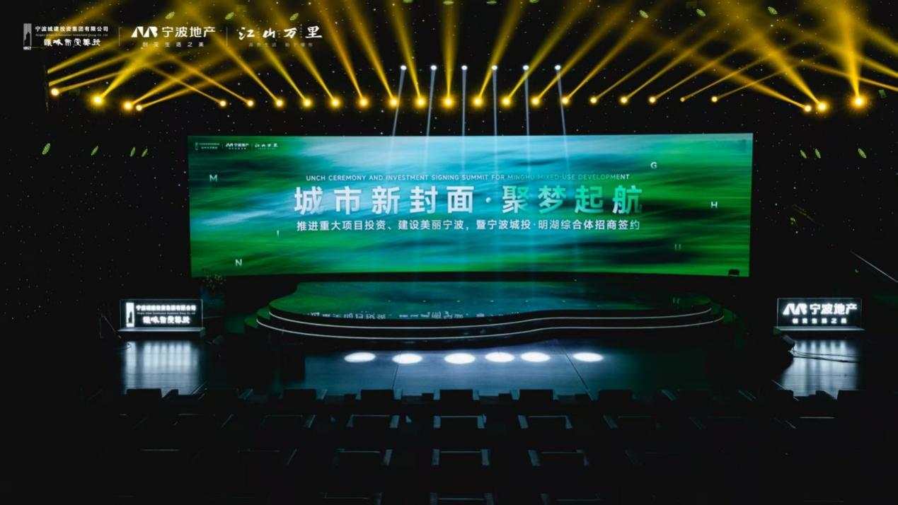 当长三角一体化的浪潮奔涌向前,宁波这座千年港城正以重大项目抓手、以生态理念为灵魂,在东部新城的版图上勾勒现代滨海都会的新轮廓。12月14日下午,“城市新封面·聚梦起航——推进重大项目投资、建设美丽宁波暨宁波城投·明湖综合体招商签约活动”隆重举行,备受关注的明湖综合体项目正式发布案名“宁波梦世界”,标志着这座承载城市生活新想象的滨水POD(Park-Oriented Development,公园导向开发)综合体全面启航。