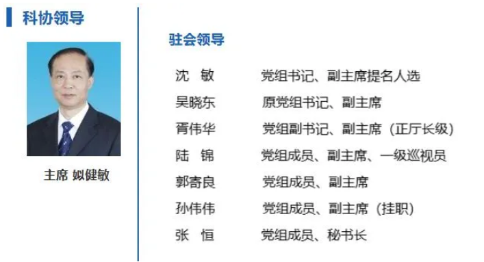 近日,浙江省科协官网“科协领导”一栏更新后显示,沈敏已任浙江省科协党组书记、副主席提名人选。