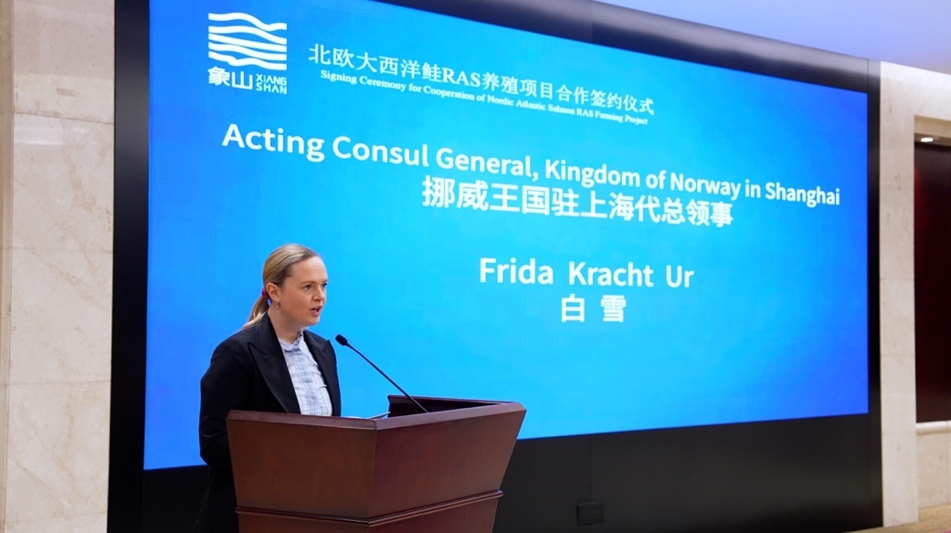 挪威王国驻上海代总领事白雪在致辞中表示,大西洋鲑RAS养殖项目是中挪两国在绿色发展和现代渔业领域深化合作的重要成果。项目充分融合挪威在循环水养殖技术方面的领先优势和中国市场的巨大需求,体现了双方在食品安全、可持续发展和产业创新等方面的高度契合。她指出,项目自落地宁波以来进展顺利,已成为中挪务实合作的代表性项目,挪方将持续关注并支持项目建设,期待双方在更广领域拓展合作空间,实现互利共赢、共同发展。