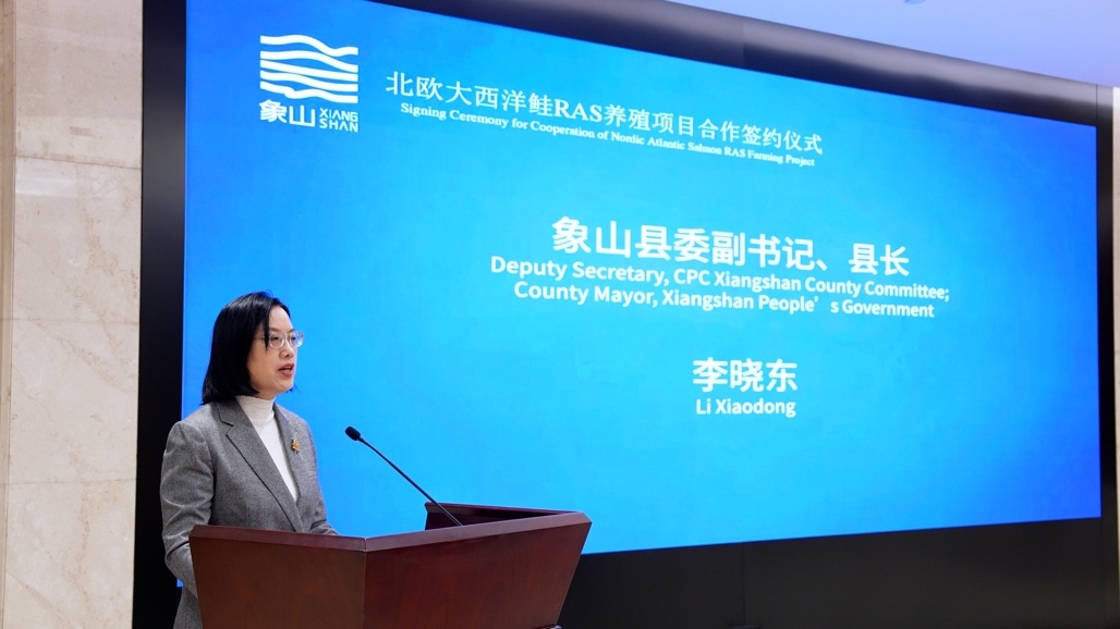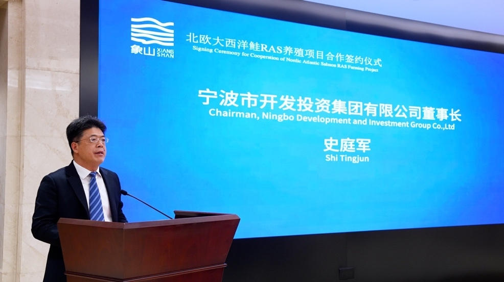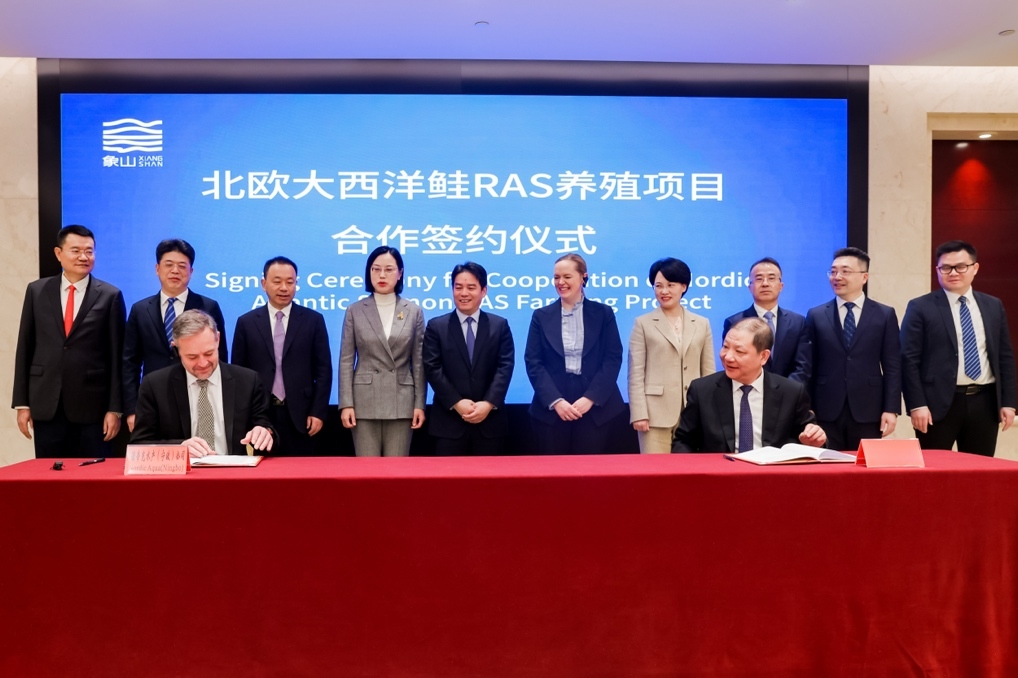 北欧大西洋鲑RAS养殖项目是中国首个实现规模化商业运营的大西洋鲑陆基循环水养殖项目,采用国际领先的RAS(循环水养殖系统)技术,通过高比例循环利用水体,实现节能降耗、生态环保和稳定高效生产。项目自落户象山以来,持续深化中挪双方在现代渔业领域的务实合作,已成为宁波推进现代设施渔业发展、加快海洋经济转型升级的重要载体。