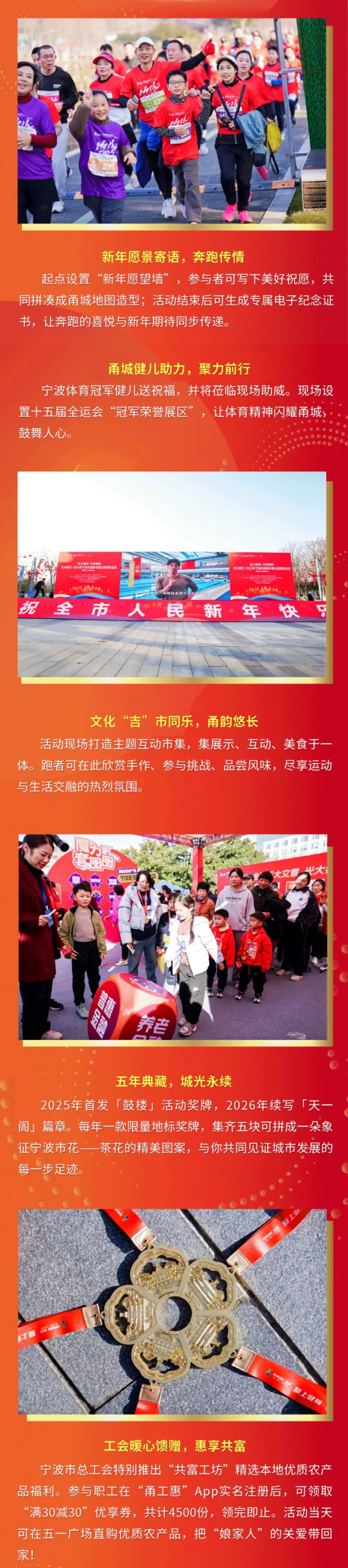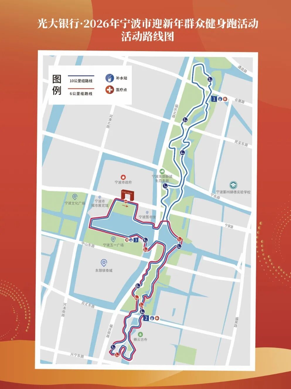 本次活动以宁波市民广场为核心,串联起宁波图书馆、生态走廊、五一广场和宁波城市展览馆等多个标志性景观与公共空间。沿途既可感受现代化都市的蓬勃朝气,也能领略到宁波独有的自然与人文风情,让奔跑成为一场愉悦的城市探索之旅。