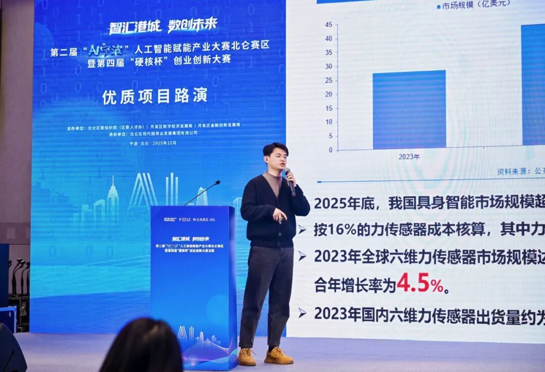 何教授团队的具身机器人视触传感器项目便是其中典型。“北仑新能源汽车、3C电子企业密集,智能检测‘精度不足’、精密磨抛‘成本过高’,一直是企业升级的拦路虎。”团队负责人直言。项目聚焦六维力传感器核心部件,突破传统技术瓶颈,实现性能比肩国际龙头、成本大幅降低的优势,还计划在宁波设研发生产基地,为本地汽车零部件企业带来“精度升级+成本下降”双重红利。