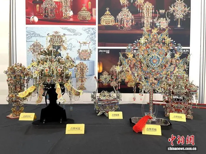12月22日,第三届“华夏奖·非物质文化遗产创意设计大赛”颁奖仪式在武汉举行。图为现场展出的代表性非遗作品。 中新社记者 马芙蓉 摄