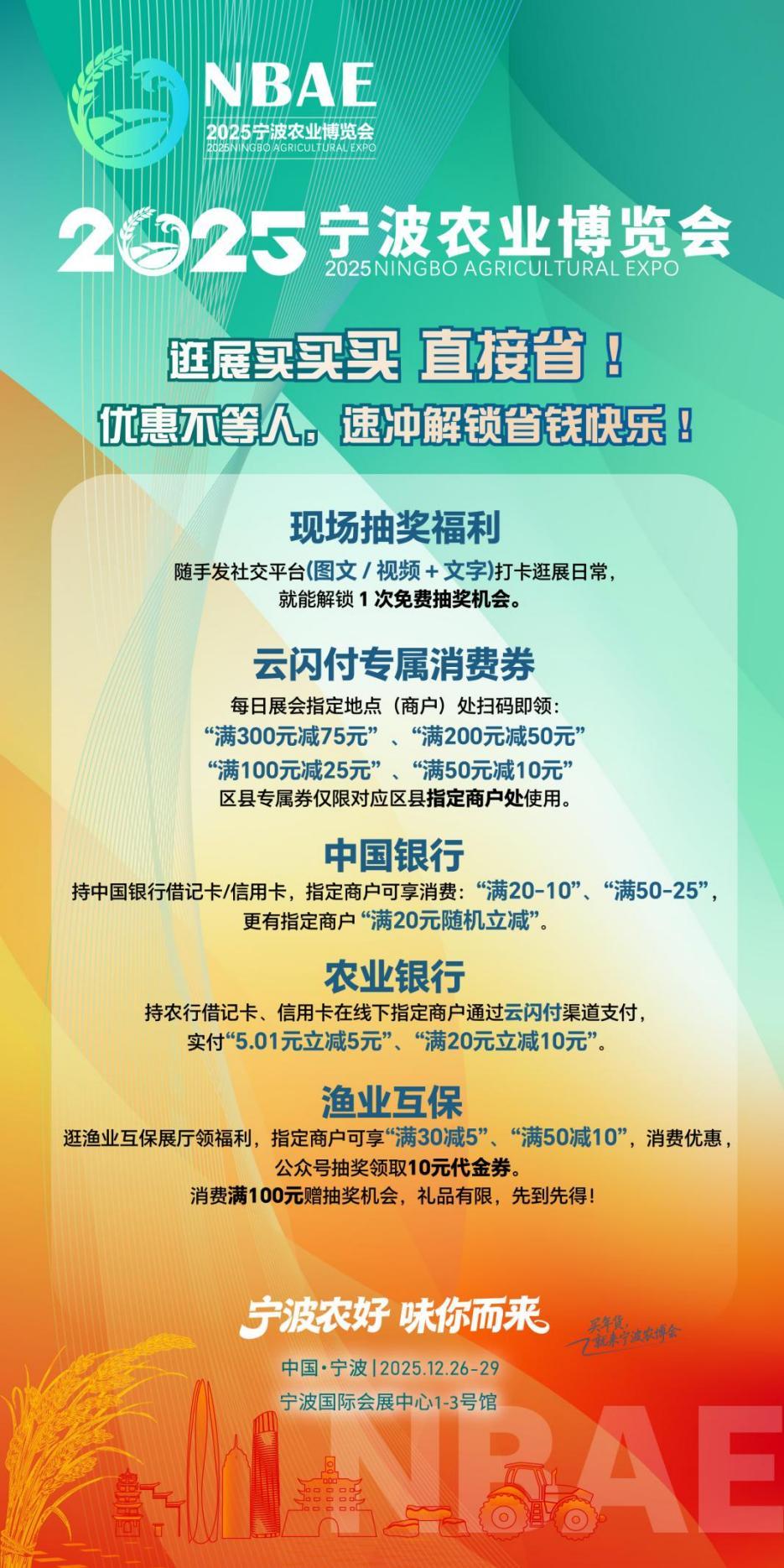 2.满30减5参观券:零门槛!只要逛到渔业互保展厅,直接就能领,随手买份小零食都能省,不拿白不拿!