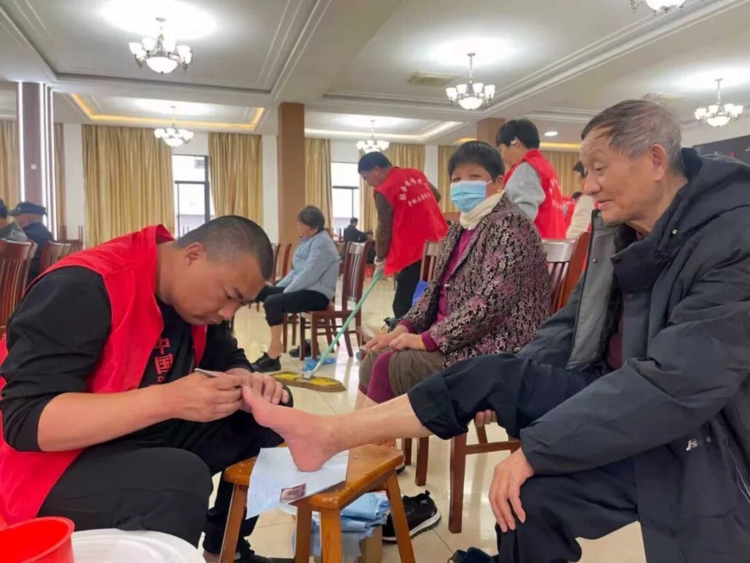 泡脚区人气最旺,80多岁的王大爷把双脚浸入温润的中药水,志愿者细心按摩,专业修脚师随后轻柔修剪。“自己弯腰剪指甲太吃力,这活动真好!”他笑着说。