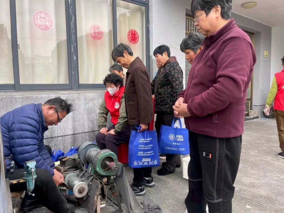 磨刀服务最是“接地气”,砂轮“嚓嚓”响起,老人们接过锃亮的菜刀,连连道谢:“现在找个磨刀的地方太难了,忠安总是想到我们心坎上!”