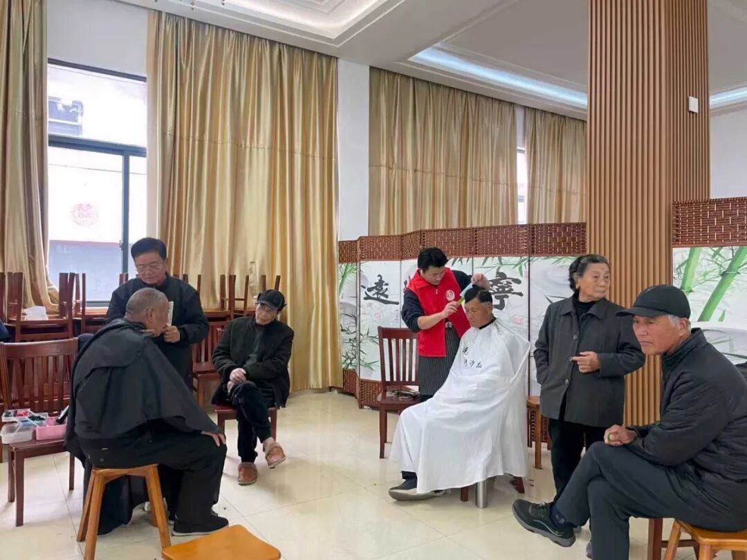 文艺表演区戏曲悠扬,理发区剪刀翻飞,整个礼堂洋溢着欢声笑语。人群中,王忠安的身影始终忙碌。他搀扶行动不便的老人,俯身倾听需求,细心叮嘱志愿者留意水温。