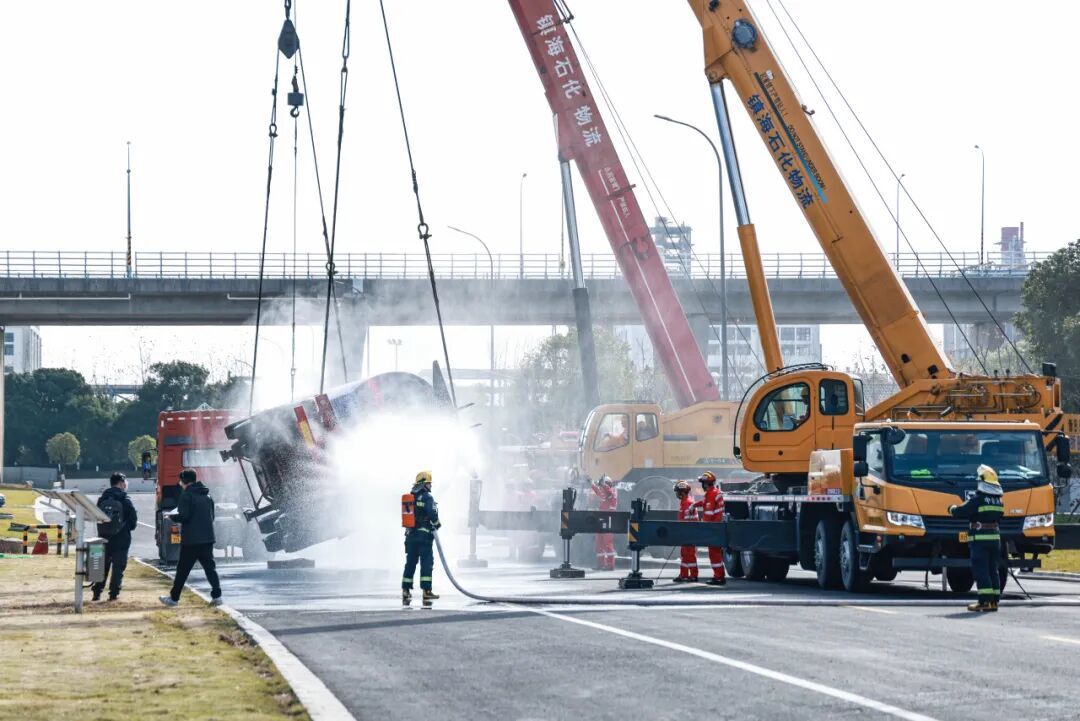 演练模拟同时应对宁波石化经济技术开发区某公司储罐区火灾事故、化工园区内二氯甲烷槽罐车泄漏两起次生突发环境事件。