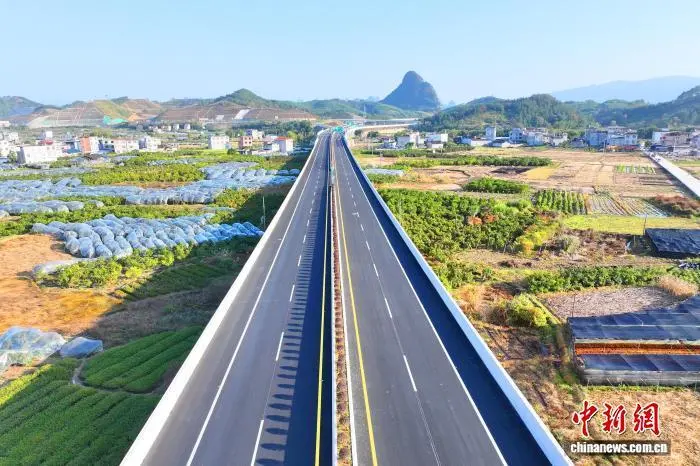 中新网南宁12月26日电 (林洁琪 黄丽莹)12月26日,由广西交通投资集团投资建设的百色巴马机场高速公路、阳鹿路与贺巴路荔浦连线高速公路建成通车,进一步完善广西高速路网,为区域协调发展注入强劲动能。