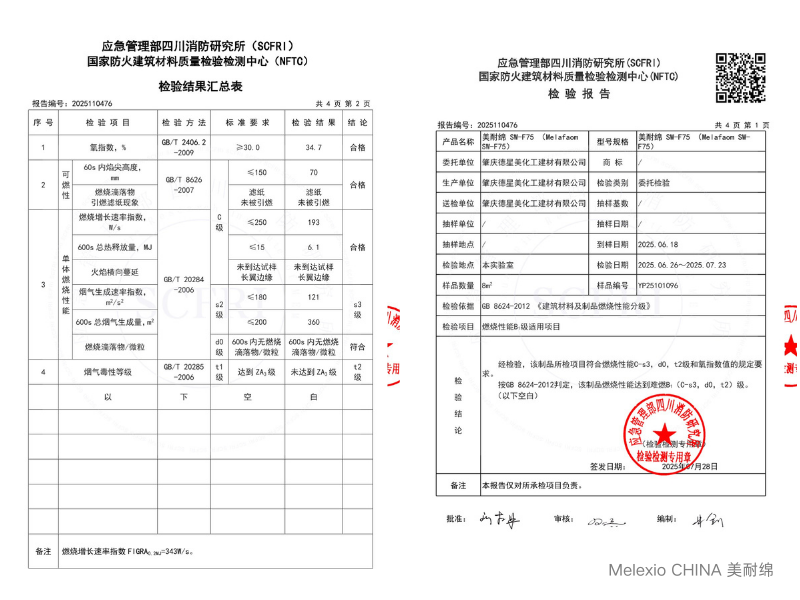 下图为中国国家标准 GB 8624 B1级(难燃材料)检测报告:
