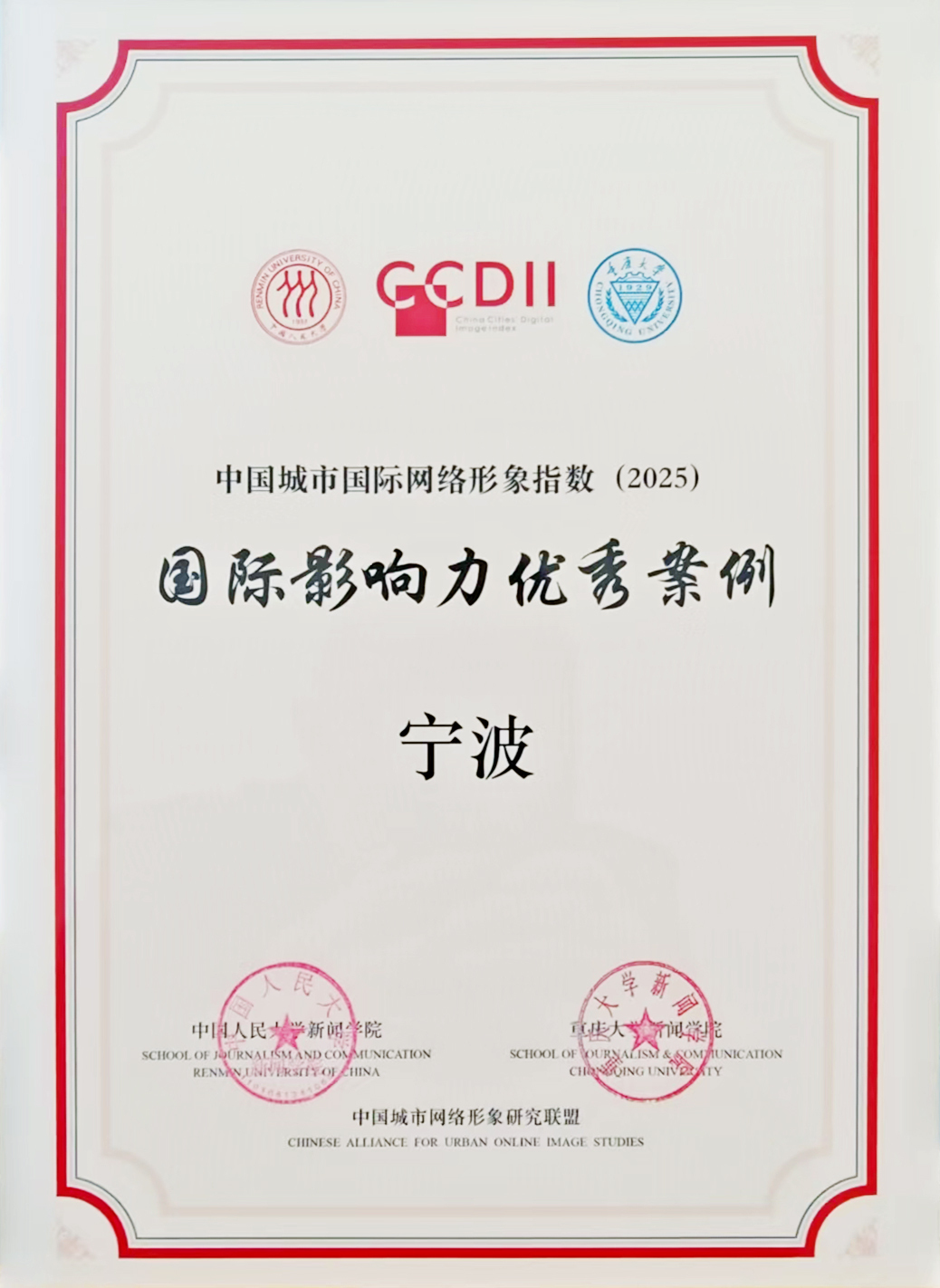 《中国城市国际网络形象指数报告(2025)》由中国人民大学新闻学院与重庆大学新闻学院牵头,联合中国传媒大学、中山大学等多所高校共同编撰完成。