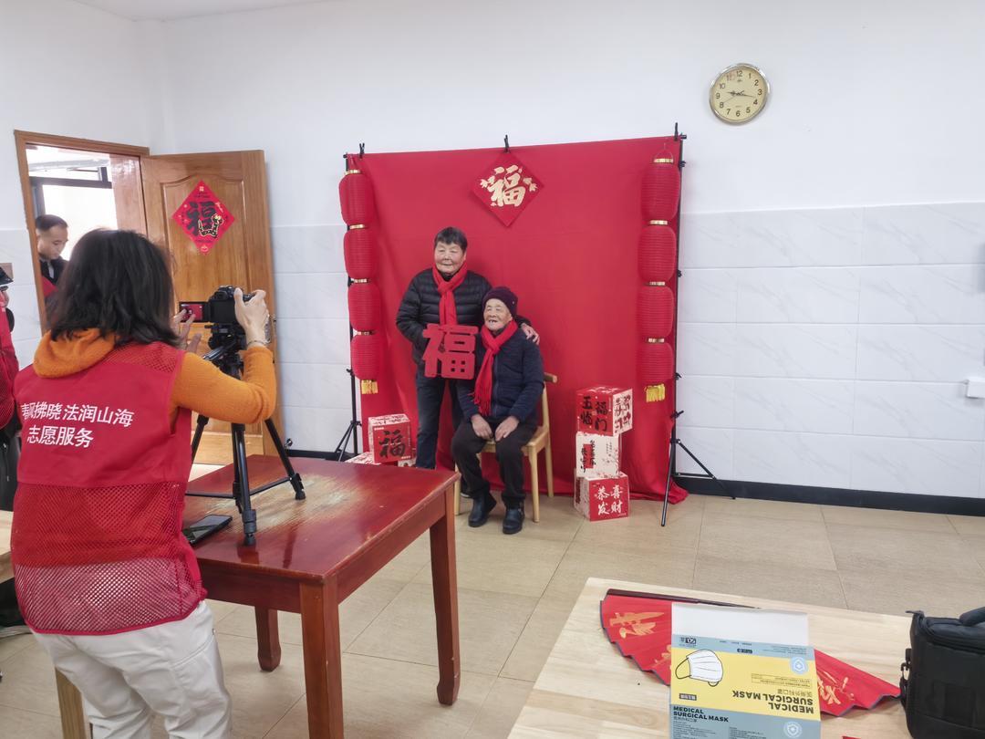 活动还专门设置了“新年照相馆”特色环节,为老人们定格温馨瞬间。志愿者全程耐心陪伴,主动搀扶行动不便的老人入座,细心帮老人整理衣冠、梳理头发,全力配合摄影师完成拍摄。一张张肖像照记录下老人们的幸福笑容。