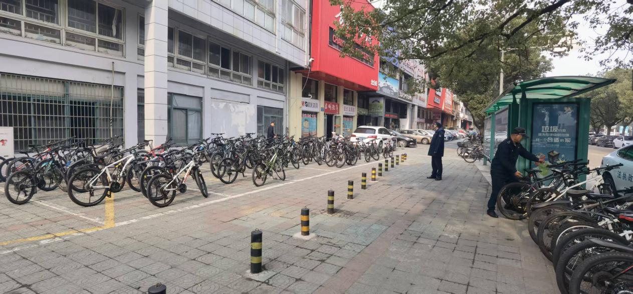 增设的自行车停车位,同时加强值守与服务