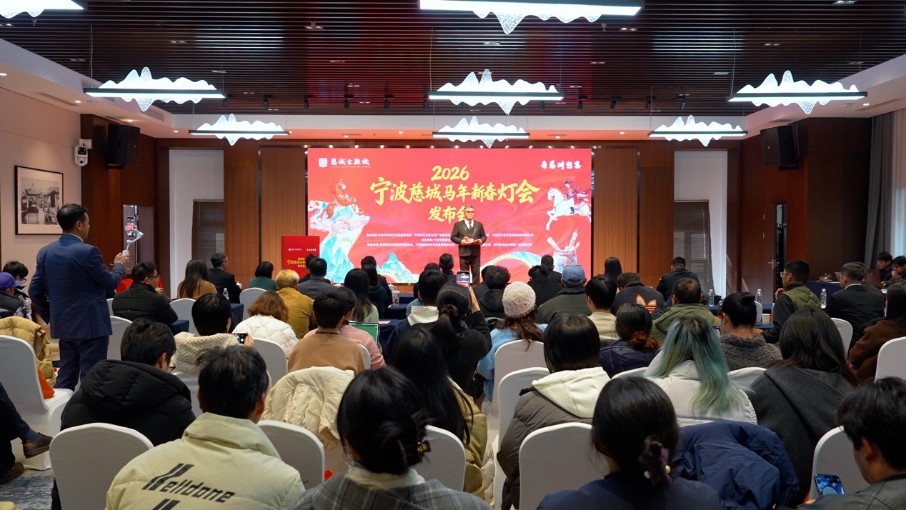 1月8日上午,由中共宁波市江北区委宣传部、宁波市江北区文化广电旅游局、宁波市江北区慈城镇人民政府、宁波市江北开发投资集团有限公司联合主办,宁波市慈城古县城旅游发展有限公司承办的“2026宁波慈城马年新春灯会”在宁波莲庭美悦酒店正式启幕发布会暨招商合作会。活动宣布,灯会将于2026年2月11日至3月8日在慈城古县城举行,以“文星耀慈城·福运喜迎春”为主题,融合唐风雅韵、城墙光影、沉浸游艺与市集烟火,打造一场跨越传统与现代的新春盛事。