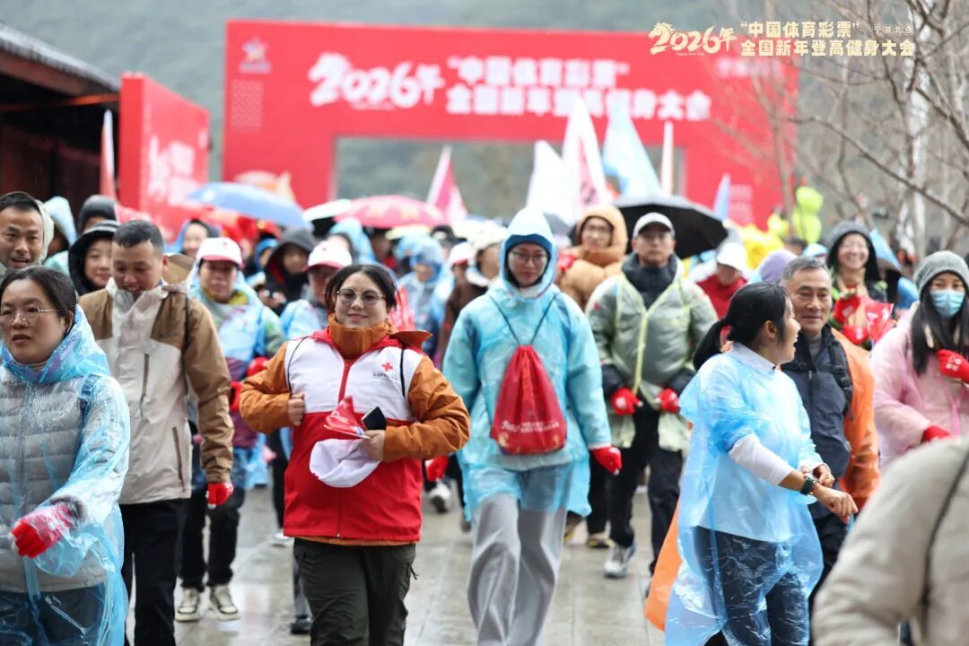 1月1日,2026年“中国体育彩票”全国新年登高健身大会(宁波北仑分会场)在九峰山旅游区网岙景区举行,近千名登山爱好者齐聚九峰山,登高祈福。