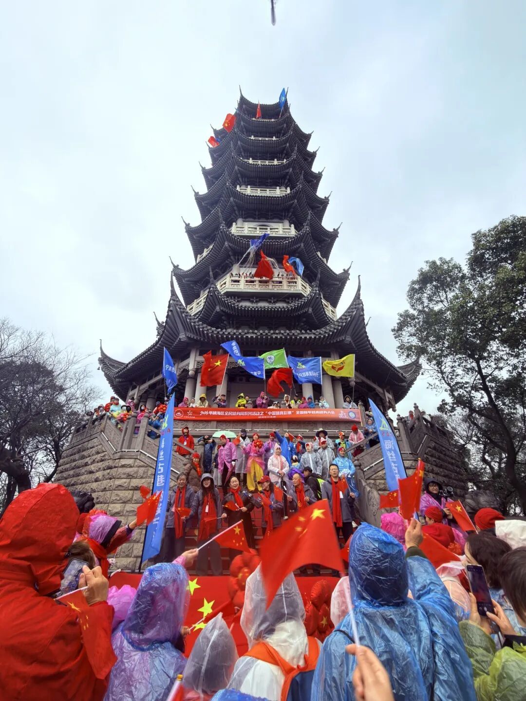 1月1日,全国新年登高健身大会(镇海分会场)与“迎新年·畅跑镇海 四站联动·共赴新程”元旦迎新跑活动在微润的晨雨中同步举行。