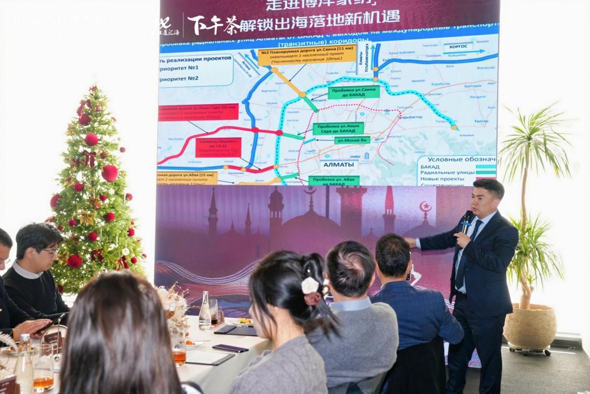活动核心环节中,哈萨克斯坦阿拉木图州政府代表团率先带来权威政策解读,为企业出海答疑解惑。阿拉木图州科纳耶夫市副市长肯杰贝科夫·托莱根、阿拉木图州旅游局局长库安什别克·米拉姆别克乌雷、阿拉木图州公路和客运局局长拜穆罕贝托夫·埃尔梅克及代表团成员,分别围绕当地投资环境、重点合作领域、产业扶持政策及市场消费潜力展开详细阐述,重点聚焦“光明之路”政策落地带来的基础设施升级与消费需求释放红利,为宁波家纺家居、智能制造等优势产业开拓中亚市场搭建了重要桥梁。