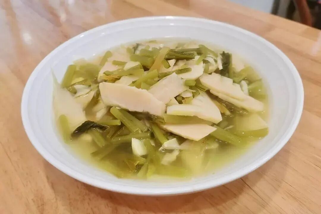 冬笋切片焯水,与酸咸适口的雪里蕻咸齑同煮,汤色清亮鲜香扑鼻,咸齑的酸爽勾着笋尖的甜,简简单单却让人食欲大开。