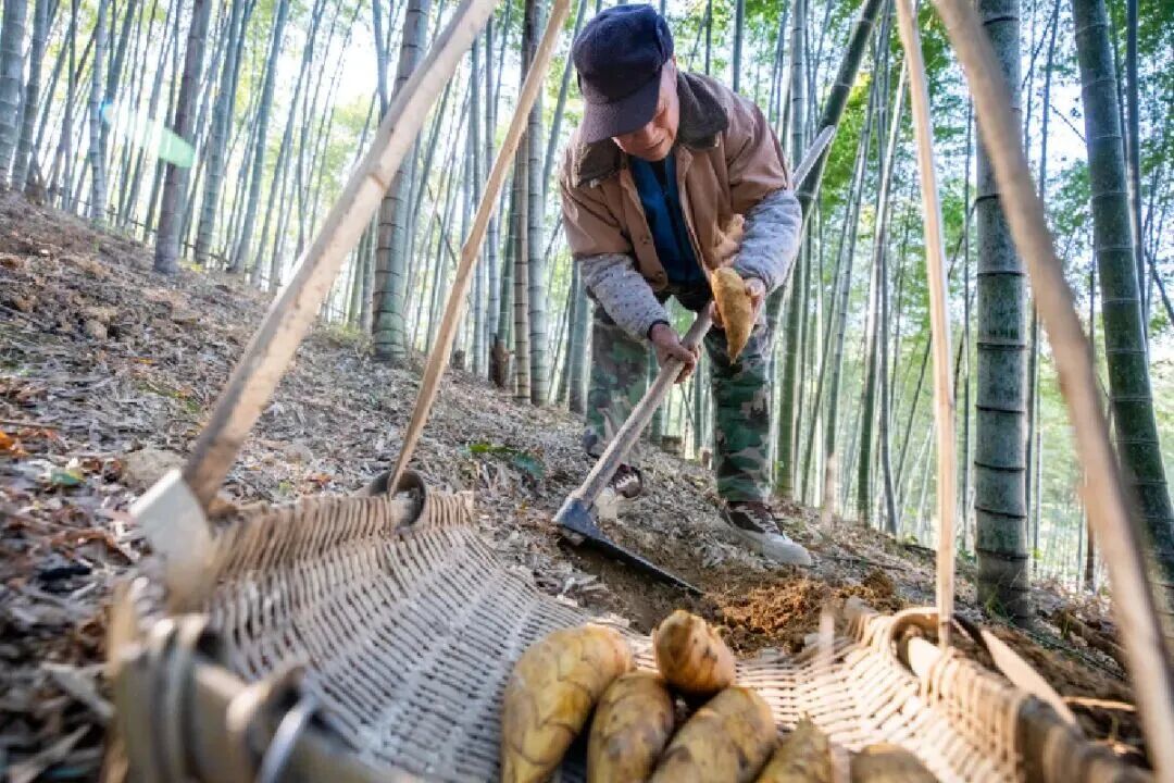 因此,有经验的竹农总是循着“土裂”的鼓包,先是用锄头微微拨开些土,如果看到了笋尖,才开始一步步地掘进。下手要准,力道要巧,既不能伤及竹鞭,又要完好取出整颗笋。这不仅是劳作,也是竹农们代代相传、与竹林对话的智慧。