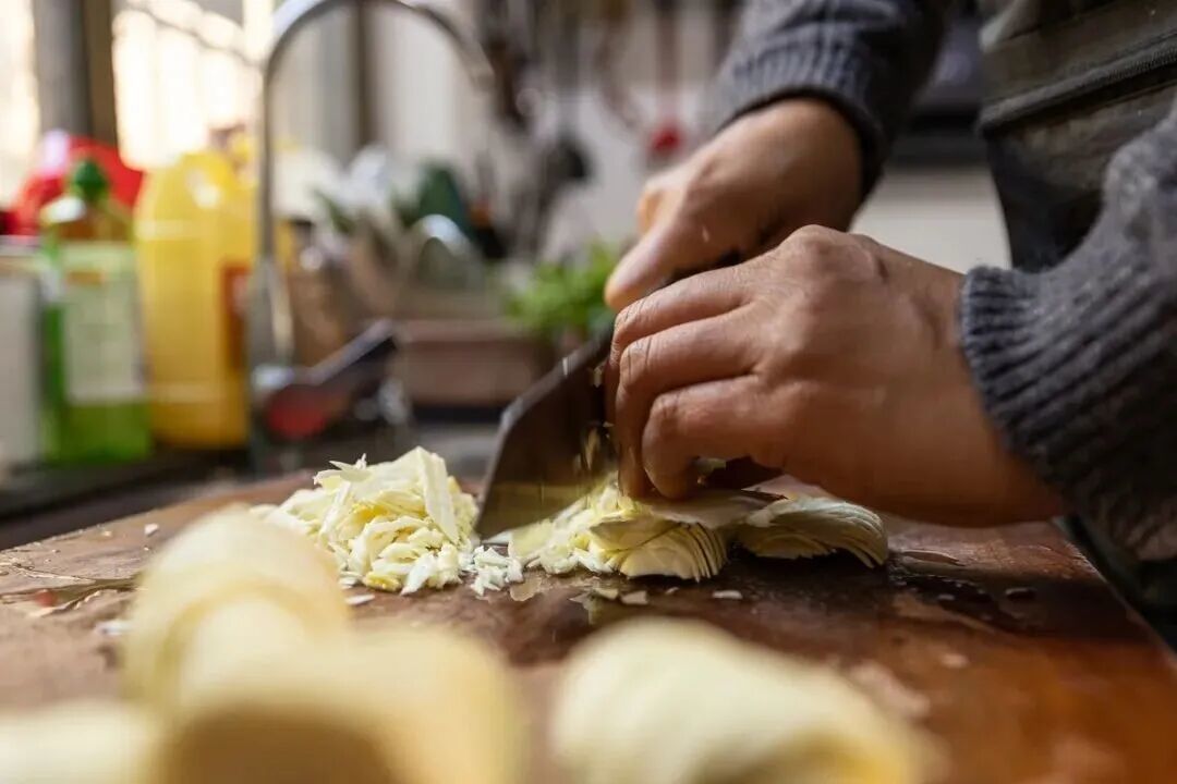 平日里烧年糕汤、牛肉干面的时候,可以切点笋片进去,就起到了“点睛之笔”的作用。冬笋与肉丝、青菜等食材相配,直让人鲜掉眉毛。
