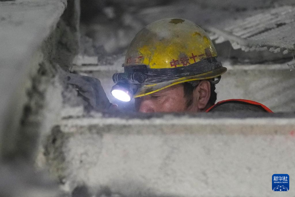 1月12日,中铁十一局集团有限公司的工作人员在雄忻高铁北太行山隧道内施工作业。新华社记者 杨晨光 摄