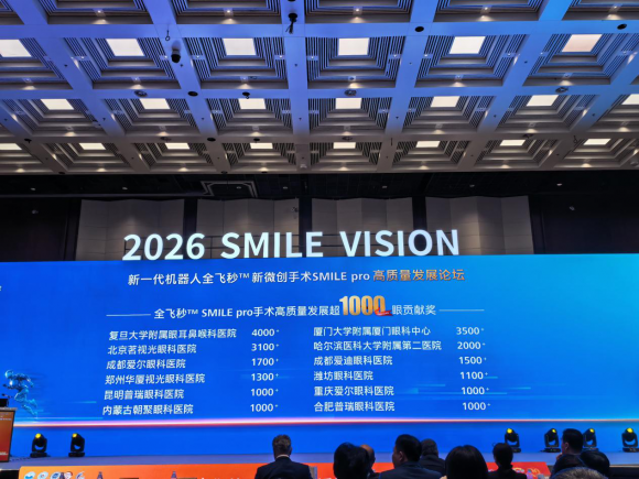 2026 年 1 月 8-10 日,2026“海上之光” 第 14 届 “关爱近视・微笑” 学术交流会在上海隆重召开。在同期举办的新一代机器人全飞秒™新微创手术 SMILE pro 高质量发展论坛上,昆明普瑞眼科医院凭借超 1000 眼的高质量手术成就,荣获蔡司中国颁发的 “全飞秒 SMILE pro 手术高质量发展超 1000 眼贡献奖”,成为云南地区首个获此殊荣的眼科机构,标志着云南眼科技术与专家实力迈入全国先进行列。