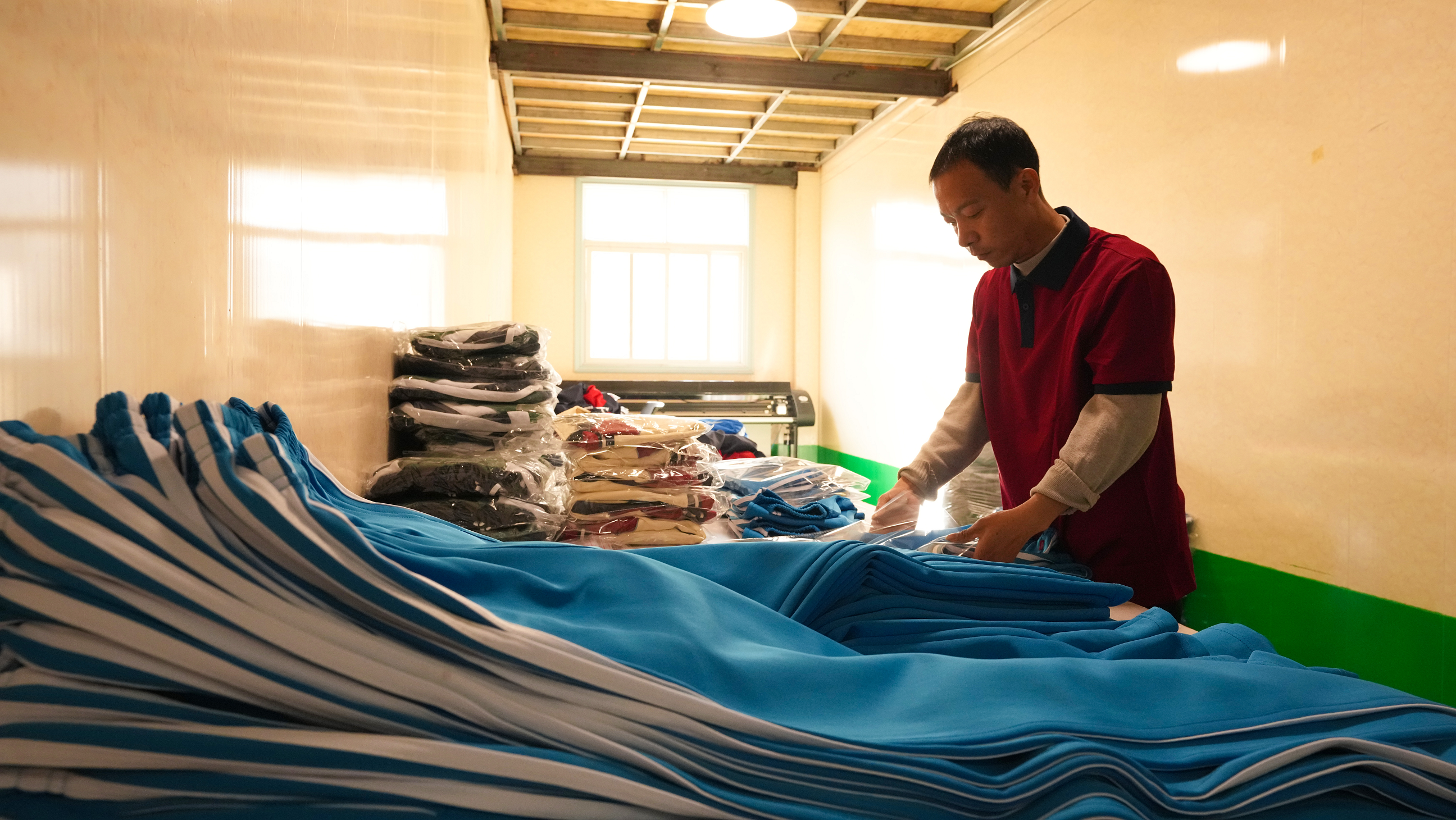 1月13日,记者走进位于荞窝镇城西村的服装加工车间,机器轰鸣声中,裁剪、缝纫、熨烫、包装等工序衔接有序,工人们正专注投入生产。“我们这里主要是做校服的,每天大概有22人在这里工作,车间优先吸纳周边村民就业,每月劳务支出约七万元,工人月薪稳定在3500至4000元之间。”厂长刘安德介绍,相较于工坊初期年均60余人的务工吸纳规模,如今就业岗位增长约230%,越来越多脱贫人口、低收入农户通过稳定就业改善生活。