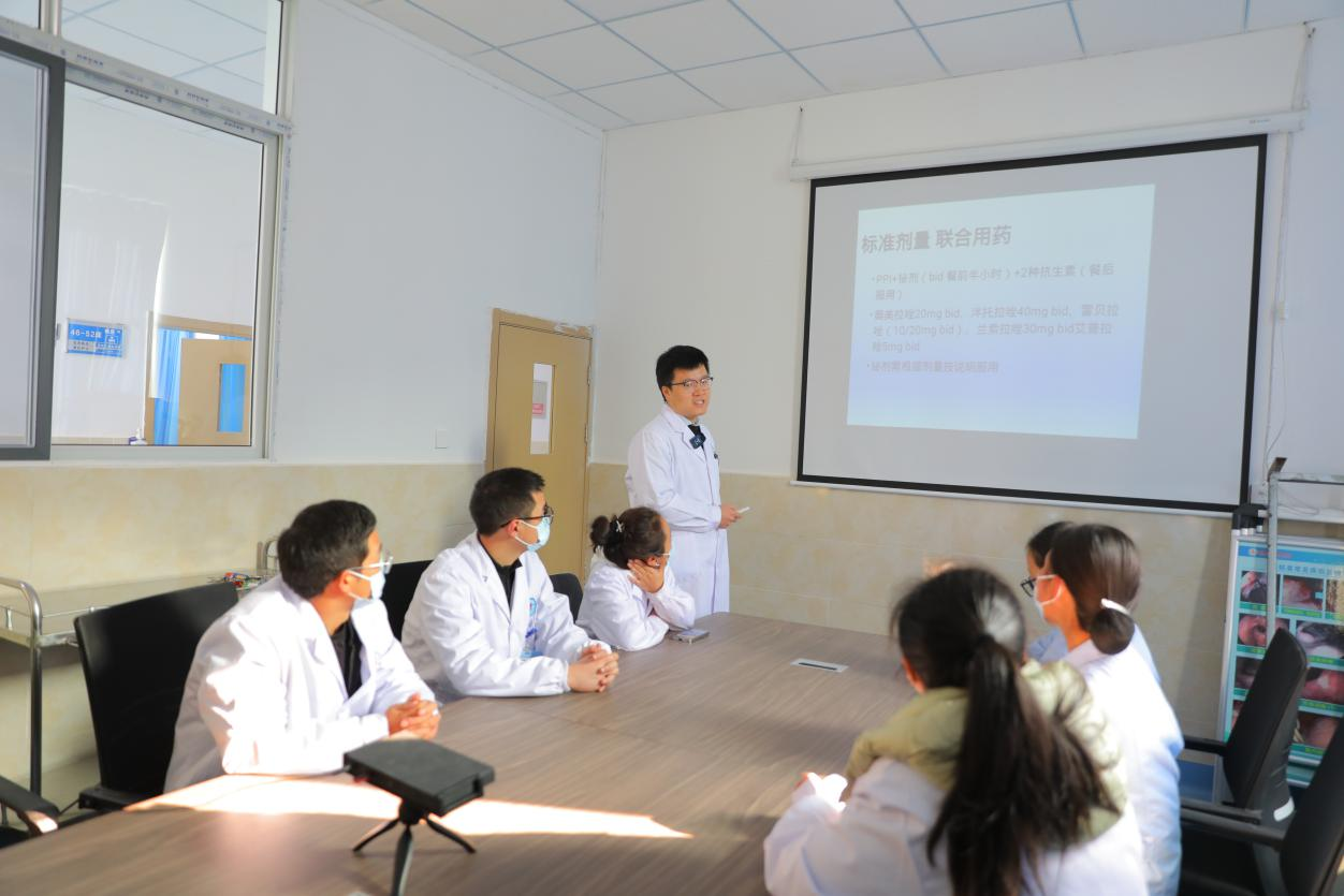 “今天我给大家分享一个幽门螺旋杆菌感染的认识和诊疗规范。”1月15日上午,美姑县人民医院的一间会议室里,北仑区宗瑞医院赴美姑县人民医院挂职的医生胡鑫,正为消化内科的医生们进行一场精彩纷呈的业务培训。他条理清晰、深入浅出地讲解着,从幽门螺旋杆菌的病原学特点、感染途径,到临床表现、诊断方法,再到规范的治疗方案和随访策略,每一个环节都讲解得细致入微。台下的医生们全神贯注,不时认真记录要点,遇到疑问便积极提问,胡鑫总是耐心解答,与大家展开热烈的讨论。