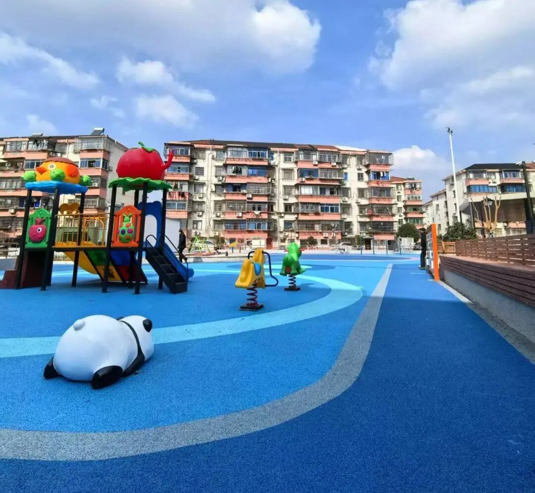 舜北新村三小区共有43幢居民楼,704户居民。作为2025年余姚市老旧小区改造工程的项目之一,小区中心广场是此次改造的一大亮点。“以前这个广场既破旧又局促,长廊和小花坛占了不少空间,根本没法好好利用。”社区党委书记马萌说,此次改造对中心广场进行了拆除重建,不仅增设了儿童游乐设施、健身器材以及邻里show场小舞台,地面还铺了蓝色塑胶,广场视野变得开阔通透,环境更加整洁美观,整体功能性实现了质的飞跃。如今,这里已成为小区里人气最旺的“打卡地”。