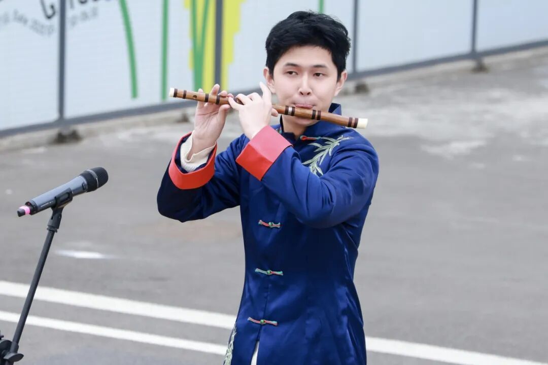演出在《放马山歌》高亢自由的旋律中开场,顷刻间将观众带入山野牧马的辽阔意境。随后,越剧表演唱以柔美婉转的唱腔勾勒江南韵致,引得台下轻声跟唱。竹笛独奏《扬鞭催马运粮忙》则以跃动的音符诠释出马年奋发向前的精神寓意。此外,《如愿》《走马》等流行曲目亦在古塘畔依次响起,传递着属于这个时代的新声。
