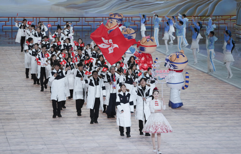 中国香港体育代表团在2025年第九届亚洲冬季运动会开幕式上入场。新华社记者 王建威 摄