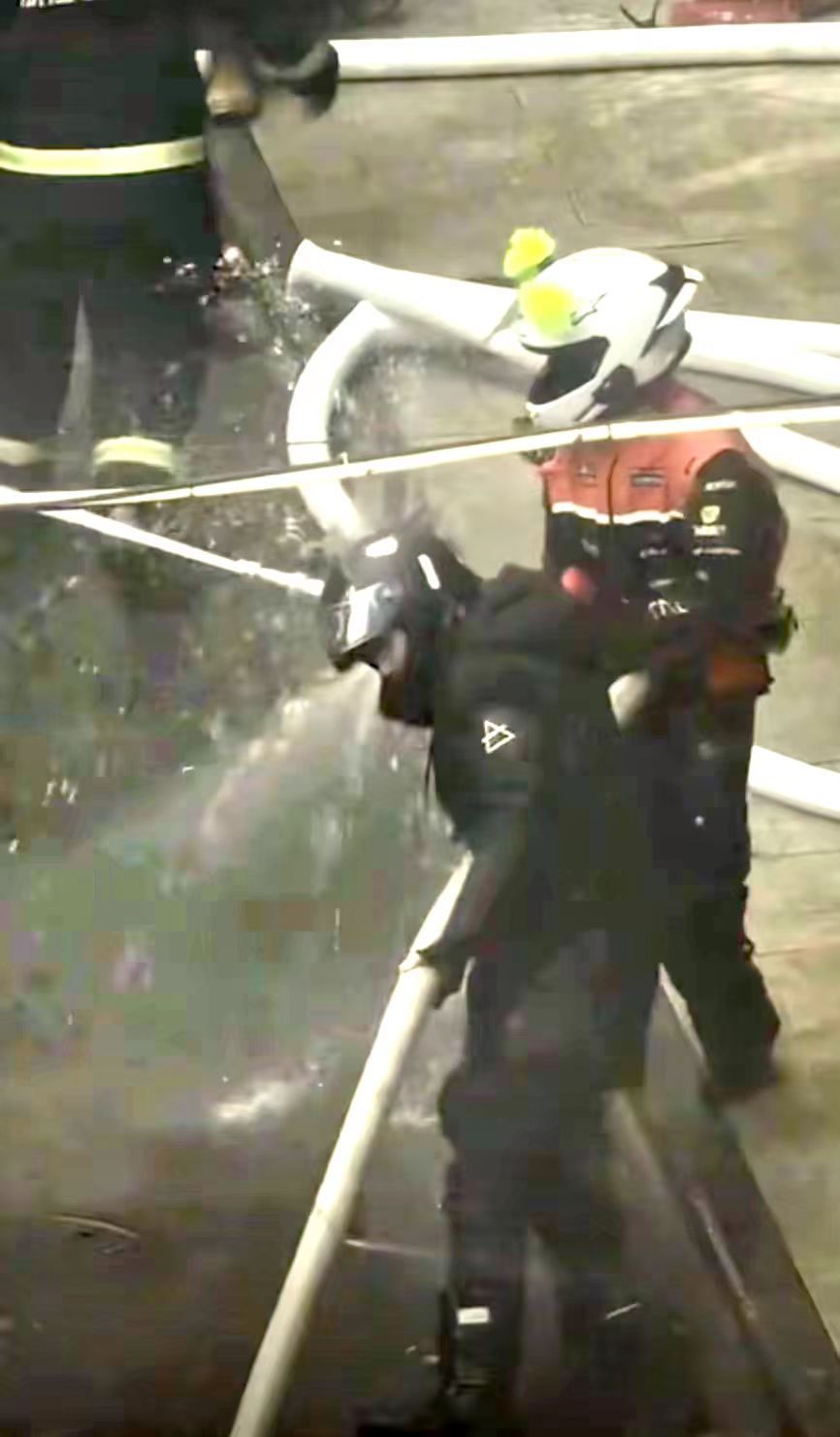 “我们平时有消防培训,对灭火器熟悉一点,所以我就拎起一个冲了进去。”因为火势逐渐变大,他一个人用完了两三个灭火器,火势仍未得到有效控制。正好这时杨毅也加入进来,于是就有了后来大家在杨毅镜头里看到的“两人三枪”并肩作战的场面。