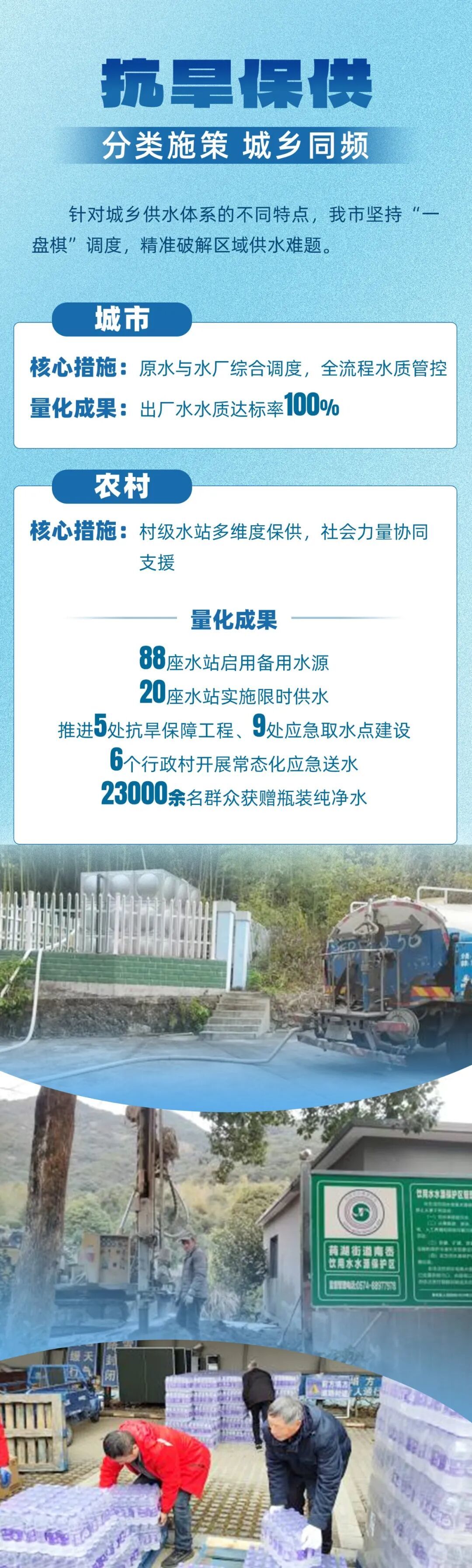 市水利部门将持续紧盯旱情发展与天气变化,以更扎实的举措、更严实的作风,筑牢城乡供水安全防线,确保每一位市民都能用上“放心水、安全水”!