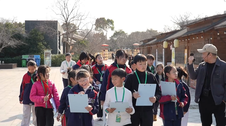 立春的宁波植物园里,阳光和煦、绿意盎然,一群手捧笔记本的青少年学生正安静地“采访”冬天。