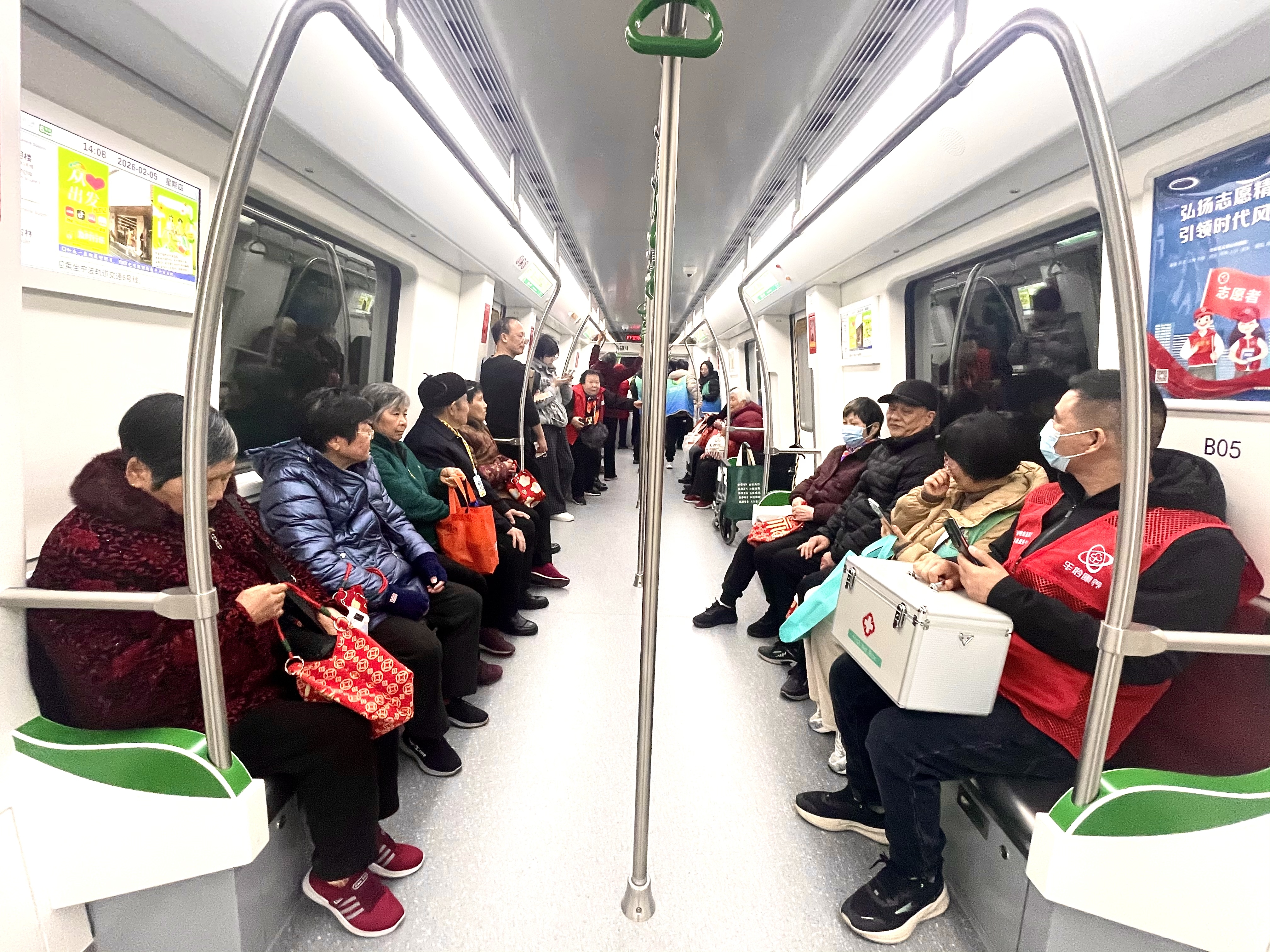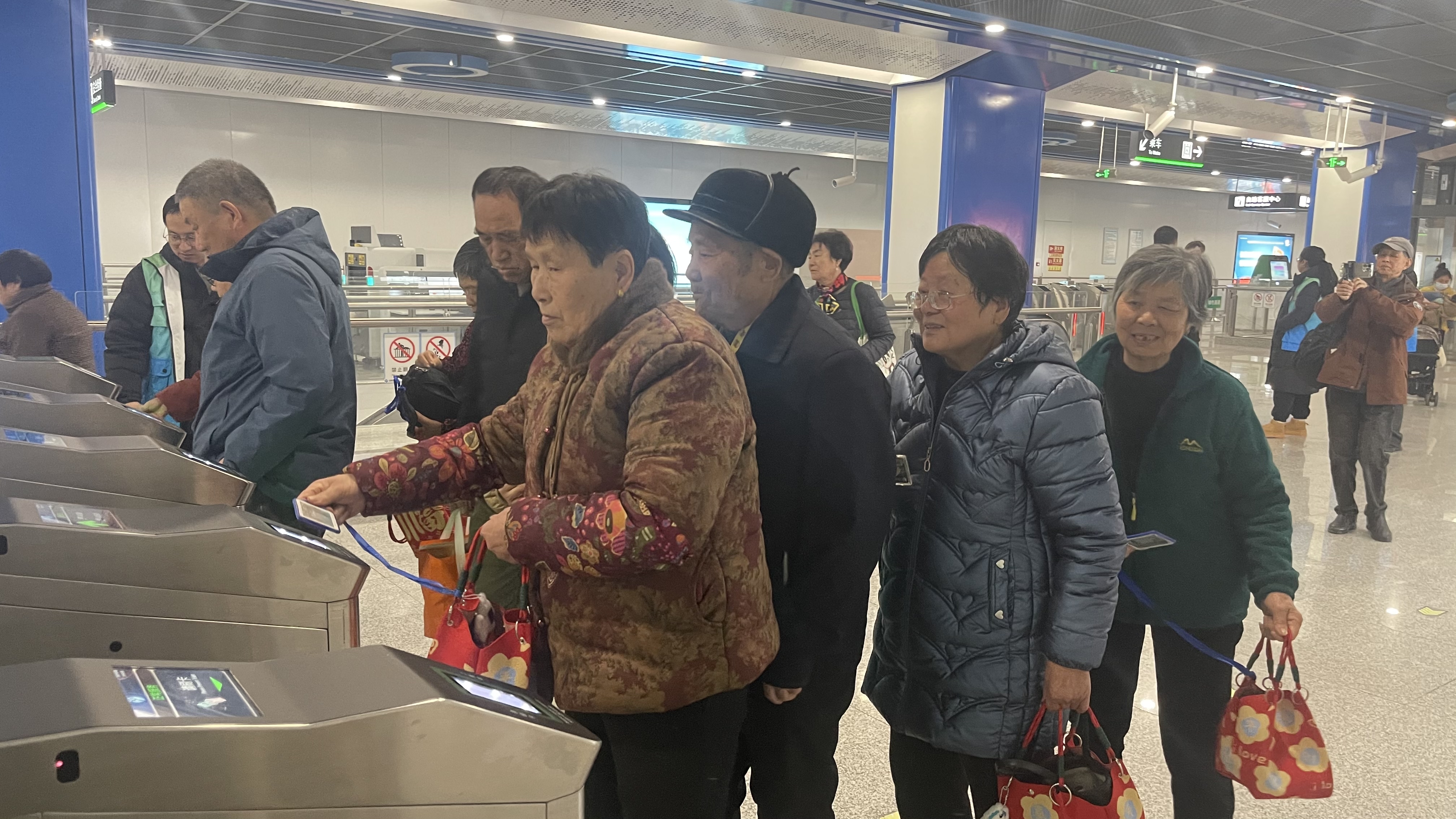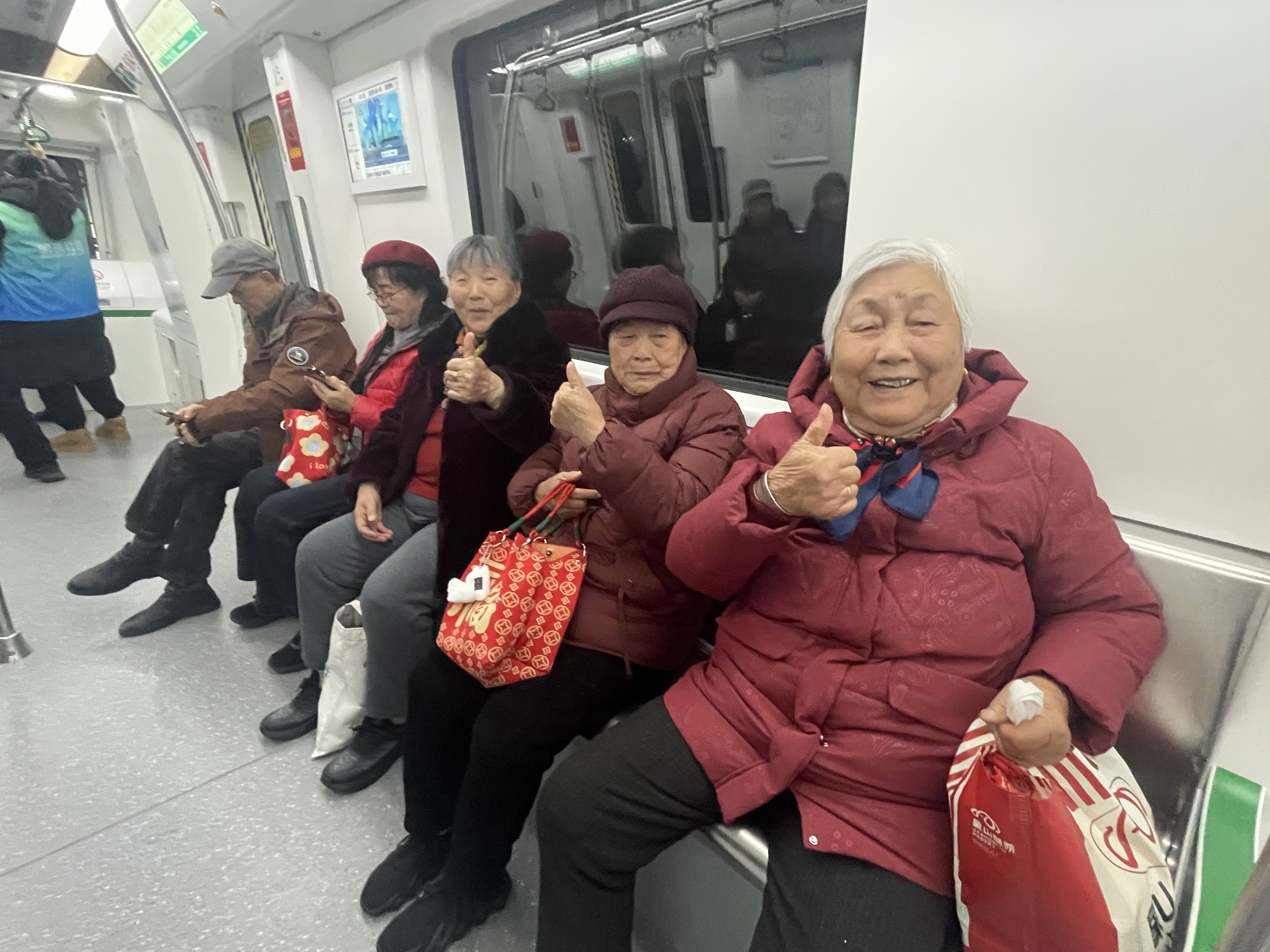 2月5日下午,90岁的陈奶奶连同小区里17名爷爷奶奶实现了心愿:在宁波高新区明珠社区社工的帮助下,她们第一次坐上期盼已久的地铁6号线,从明珠路站出发,一路直达古林站。