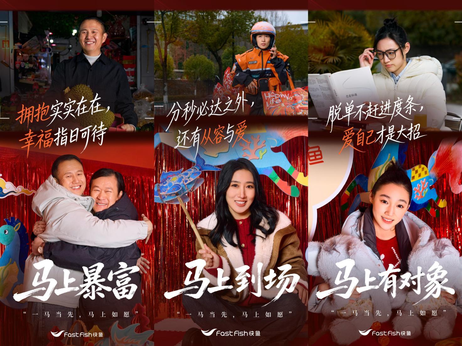 马年新春将至,快鱼以“一马当先,马上如愿”的美好期许,祝愿每一位消费者新春快乐、阖家团圆,在新的一年里怀揣勇气、拥抱愉悦,让平凡生活绽放不凡光彩。