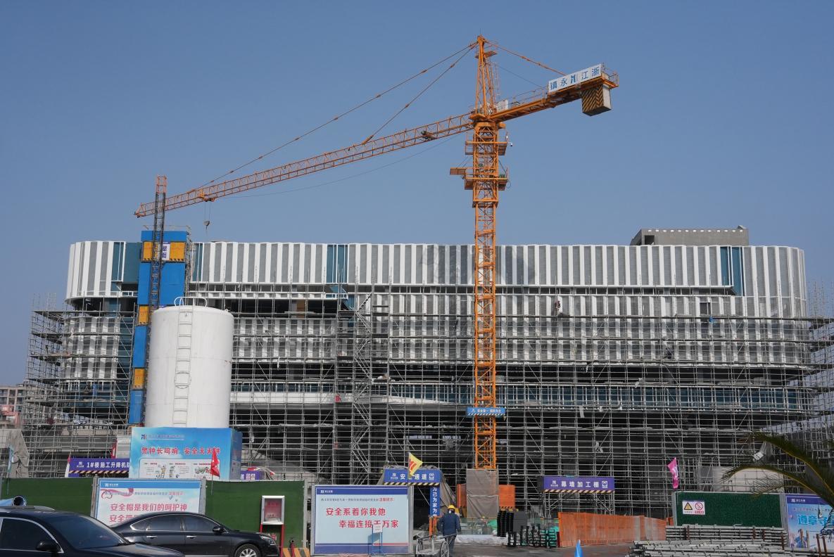 甬江实验室B区九年一贯制学校项目于去年初开工,总工期540天。校园将建设包括教学楼、综合楼、体育馆、运动场等在内的全套教学设施。时间紧、任务重,百余名建设者日夜奋战,用汗水让校园的轮廓日渐清晰。