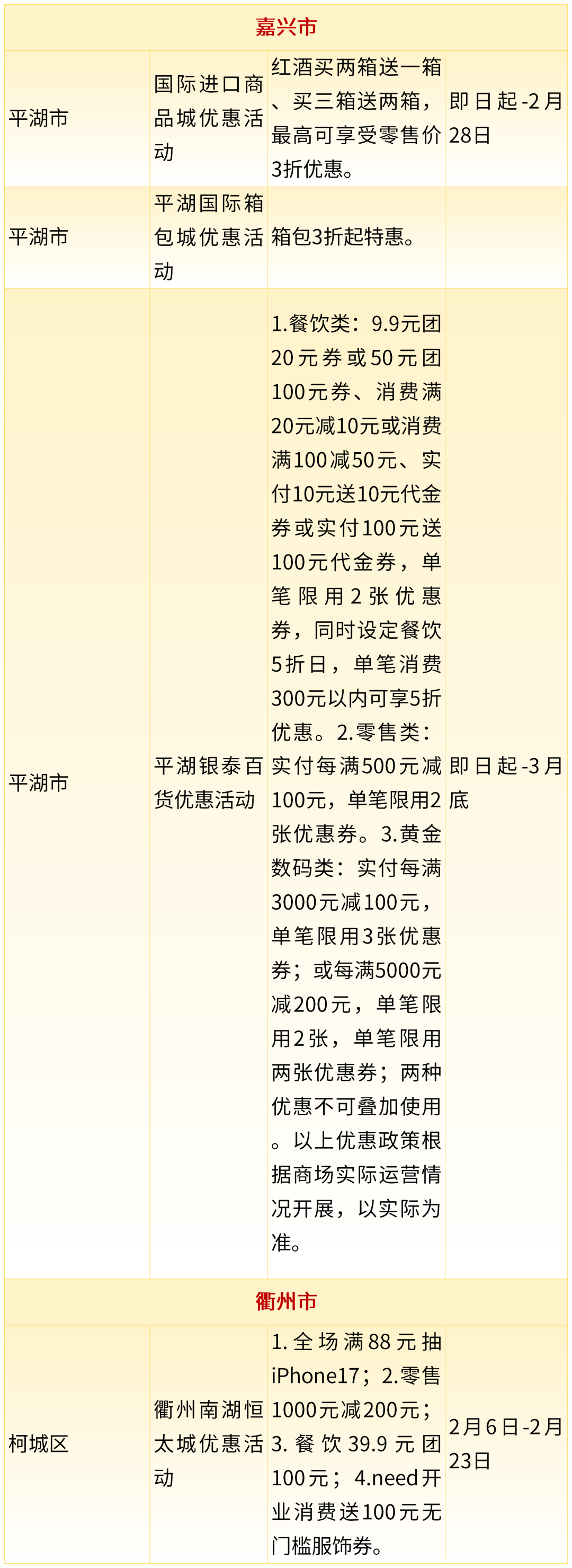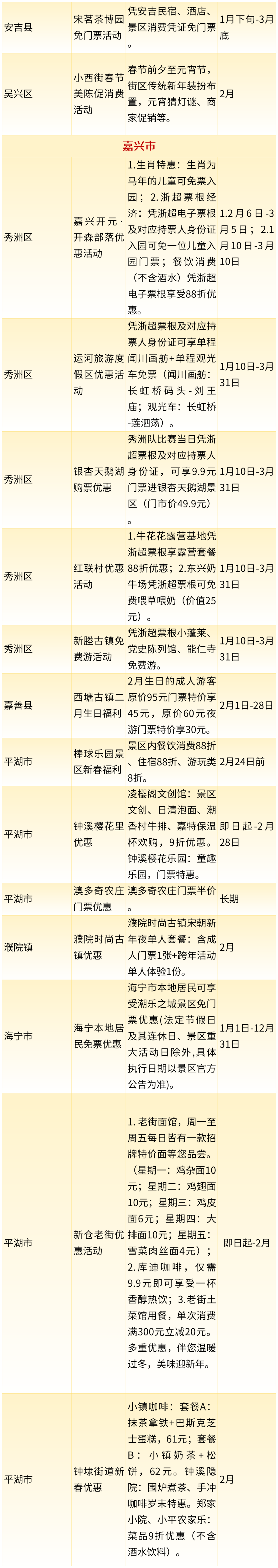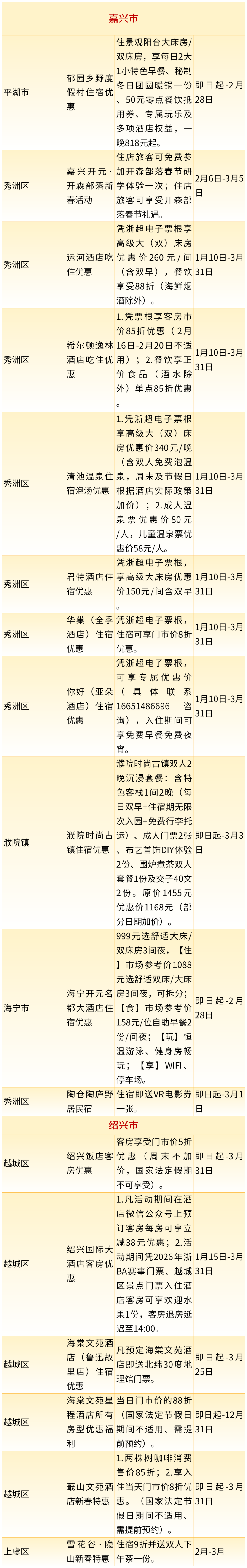 2026年浙江省新春文旅消费惠民政策来了!其中,消费券惠民举措22项,统筹发放消费券3473.5万元,景区类惠民举措56项,餐饮类惠民举措329项,住宿类惠民举措76项,赛事类惠民举措12项,商圈类惠民举措16项,一起来看~