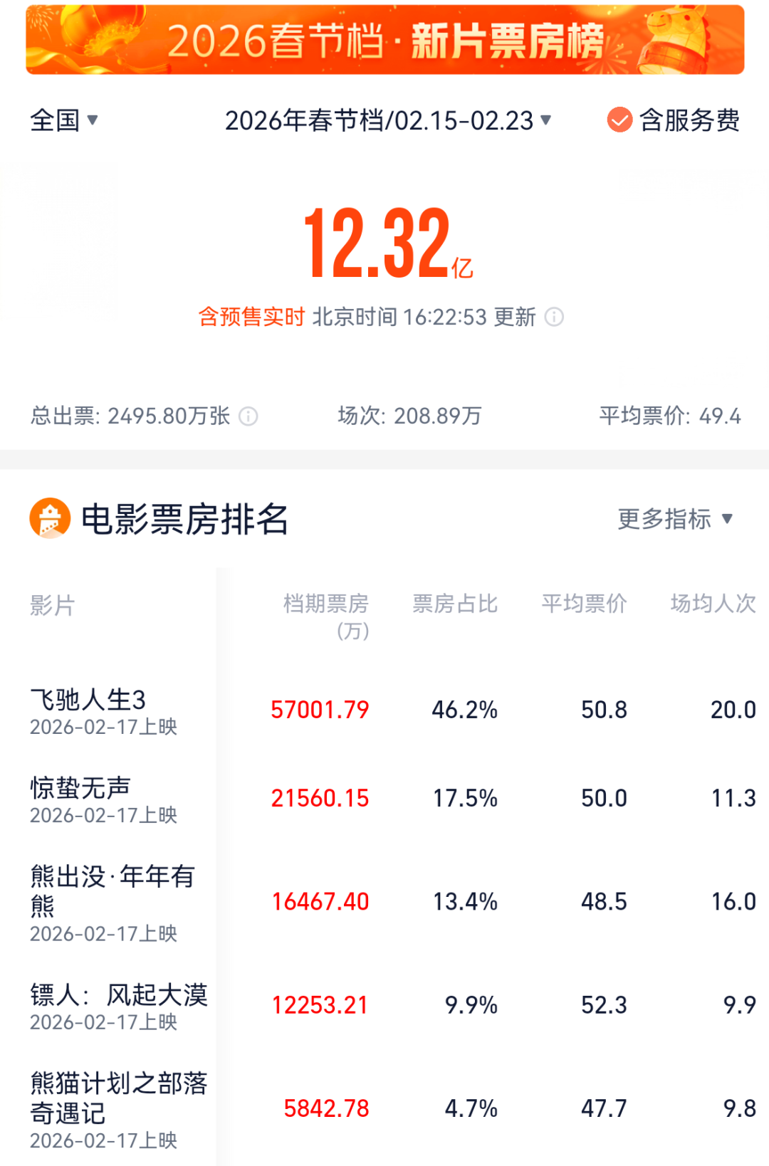 暂列春节档票房榜首位