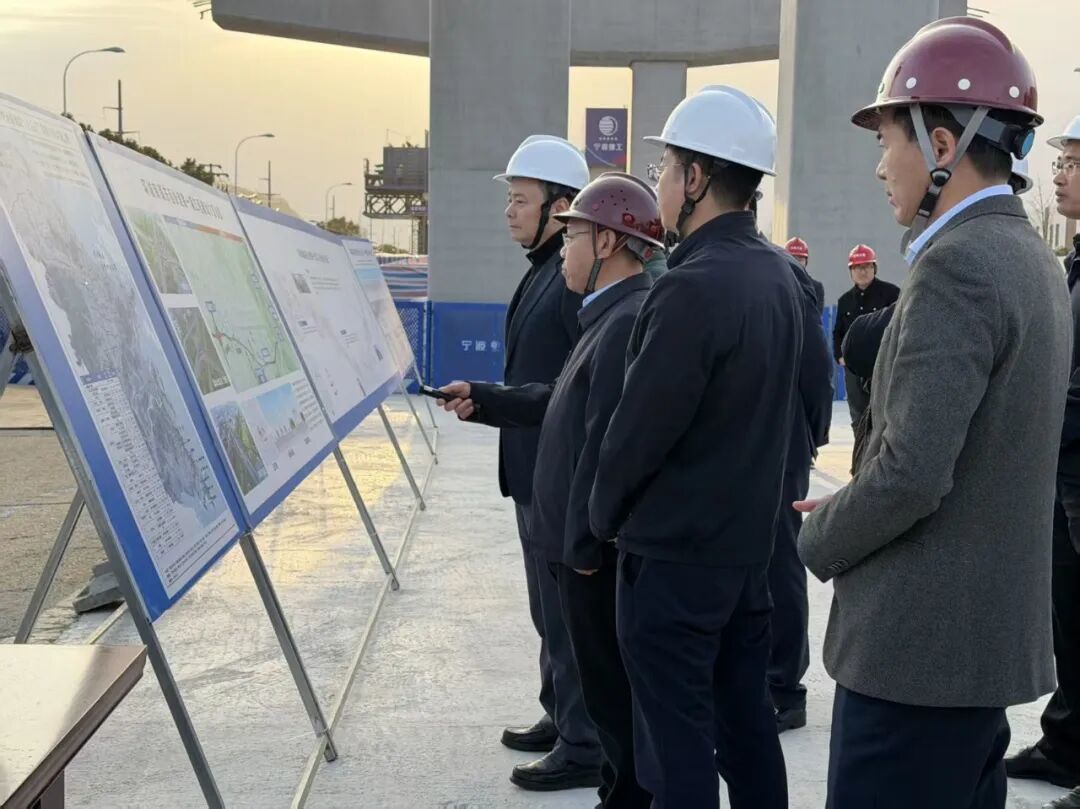 调研现场,汤飞帆一行深入施工一线,实地察看工程推进现状,详细听取项目施工组织、安全管控、节点计划等核心工作汇报。他指出,重大交通项目是稳增长、惠民生、促发展的“压舱石”,环城南路东延快速路一期工程直接关系群众出行便利和城市发展能级,必须锚定目标、挂图作战,倒排工期、攻坚克难。