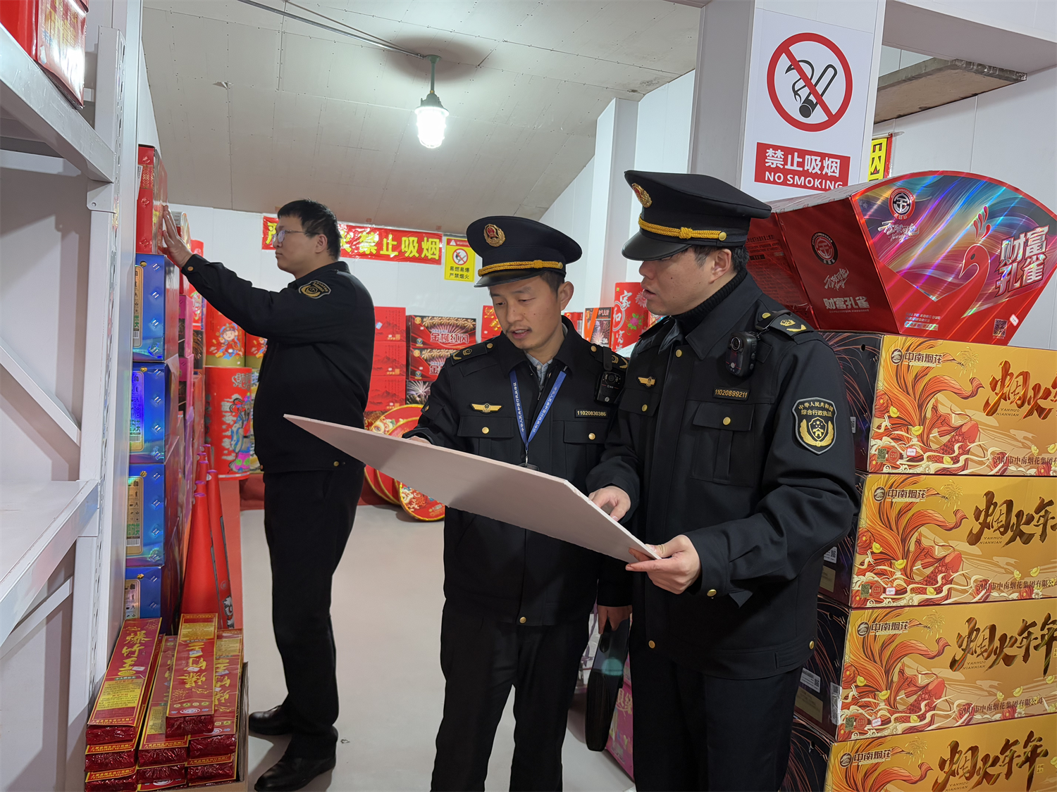 慈溪市长河中队以“源头管控、联合执法、全域巡查”为抓手,紧盯辖区5家烟花爆竹零售点,实行每日专人巡查制度;胜山中队联合多部门开展“五个严禁、三个务必”专项整治,累计出动执法人员64人次,检查门店72家次,整改隐患3处,从源头织密安全防线。