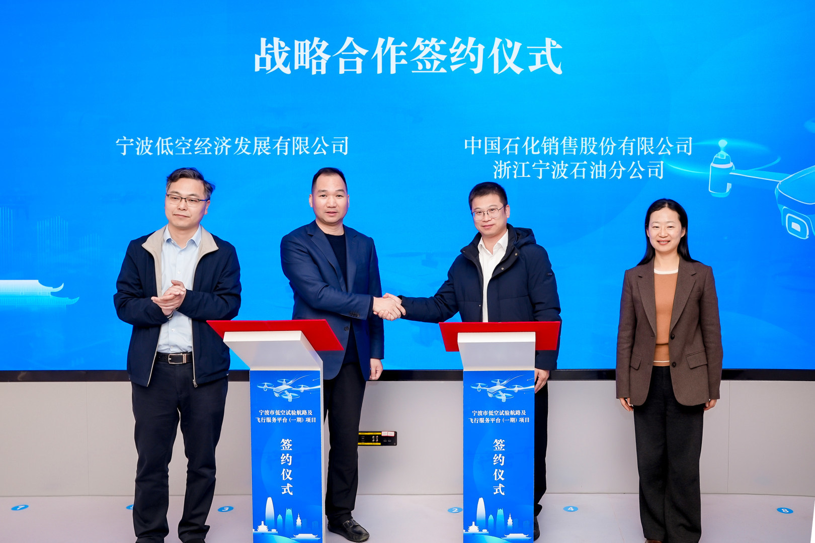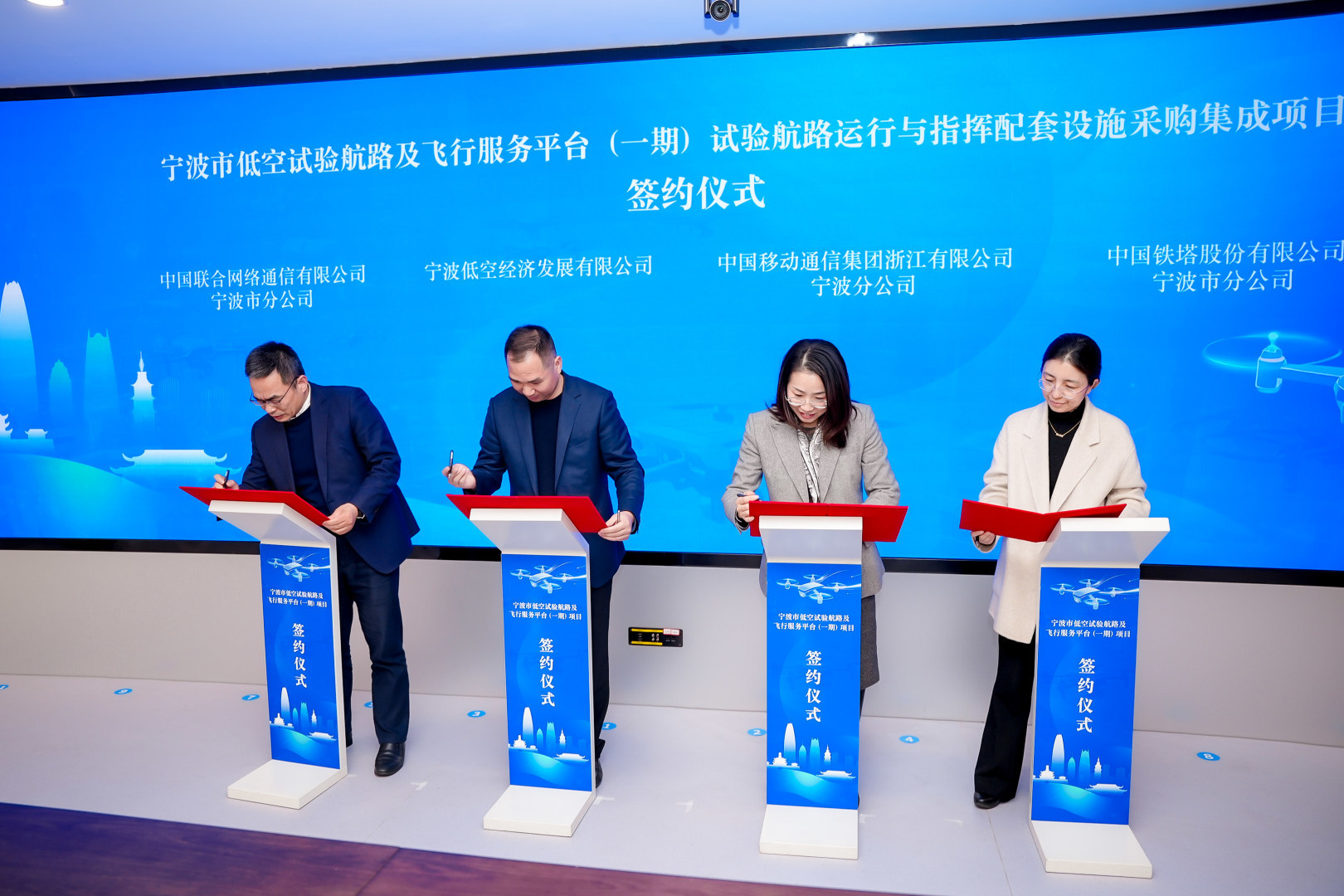 会议期间,宁波低空经济发展有限公司与各承建单位完成项目签约,并与宁波市气象服务中心、宁波市测绘和遥感技术研究院、中石化宁波石油分公司签署战略合作协议。各方将充分发挥技术、资源与人才优势,协同推进航路建设、平台搭建及设备部署。项目负责人表示,一期项目建设将坚持国产化与实用性相结合,依托现有通信基站与数字底座,着力打造兼具宁波特色与行业标杆价值的低空基础设施体系,为后续低空物流、智慧高速、海洋经济、政务服务等特色场景落地提供坚实支撑。