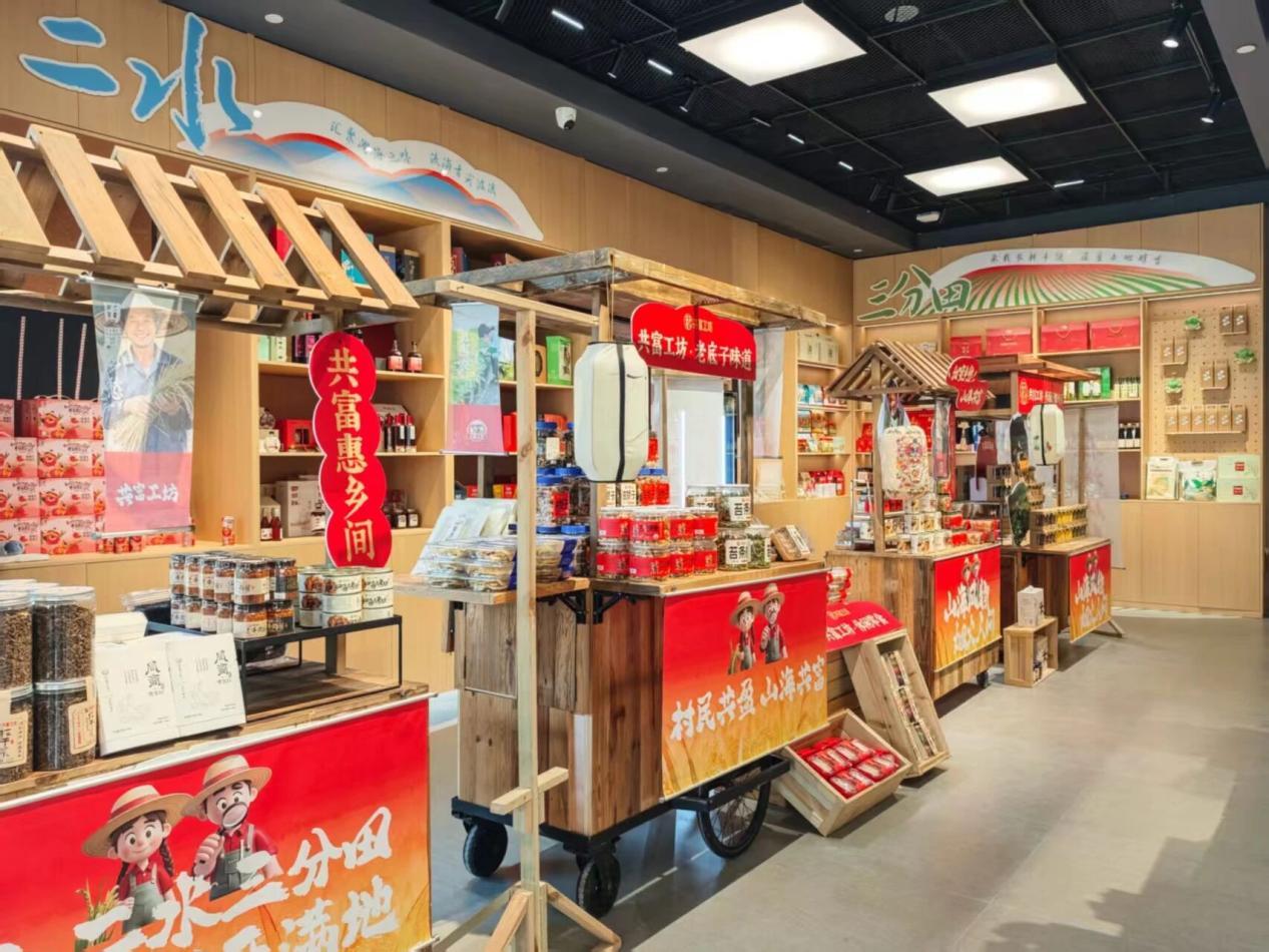 游客来了,如何让更多人带走一份“梁弄味道”?走进“四明好物”共富工坊集合店,货架上琳琅满目的本地特产给出了答案。其中一款包装精致的“梁弄街里年糕条”格外引人注目。“这款年糕条已经卖了超10000罐,销售额突破15万元。”梁弄镇横坎头村选调生黄凯介绍道,“这是我们横坎头村自己开发设计的,找本地厂商代工,包装和口味都是村里自己的创意。”店里还有五彩面、五彩年糕、番薯粉丝等本地农产品,以及一款颇受欢迎的糟鸡。据黄凯介绍,这些糟鸡是从梁弄供销社采购的,而供销社的货源都来自本地农户。