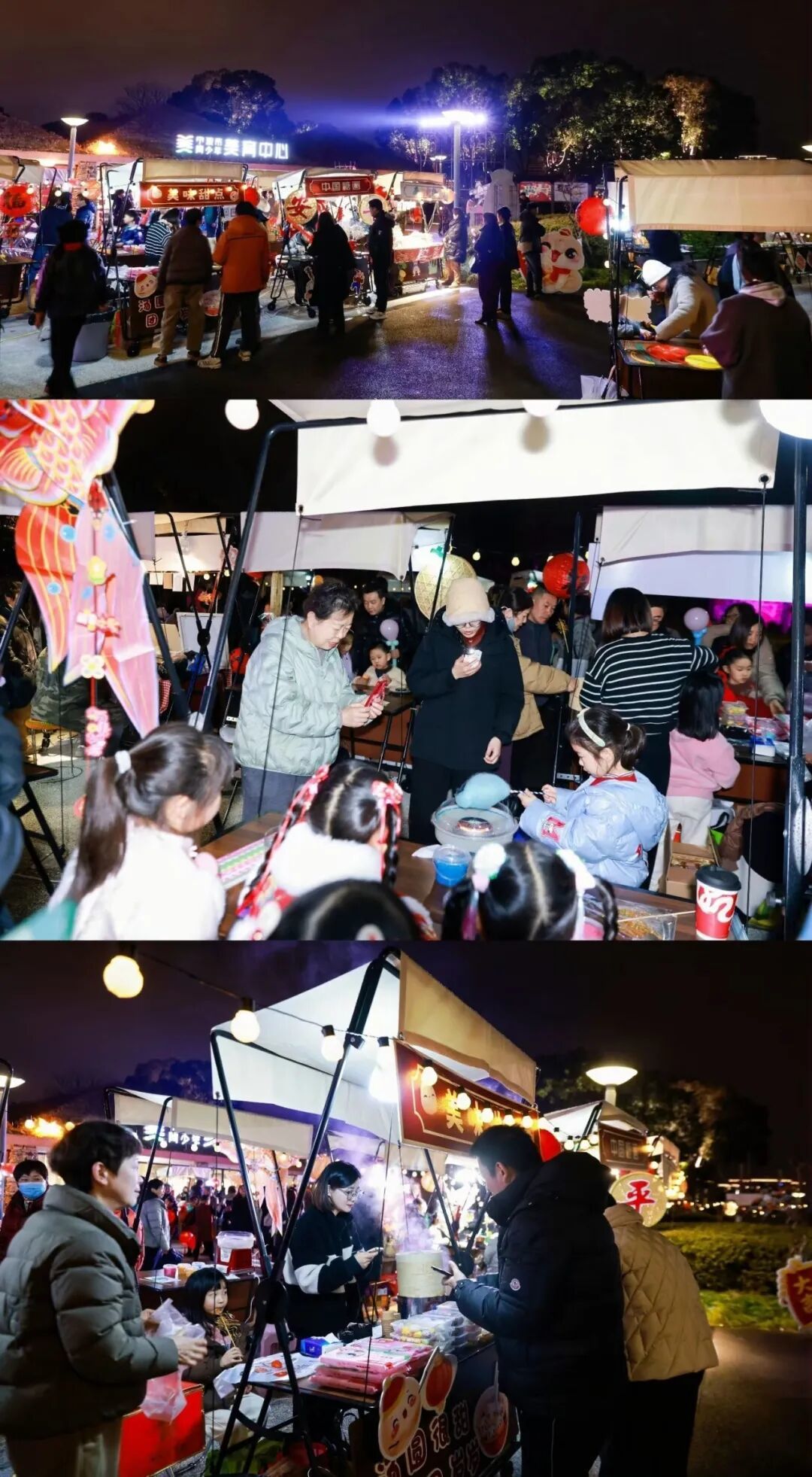 活动阵容十分强大:鼓乐铿锵激昂、国风街舞活力四射、魔术变幻莫测、少儿合唱纯真动人,舞蹈与武术轮番上演;更有非遗高跷与“水火流星”绝技惊艳亮相,带来震撼视觉盛宴。沉浸式市集里,鱼灯巡游流光溢彩,祈福年年有余(鱼)!