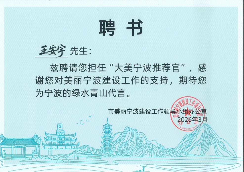 3月6日,青年演员王安宇正式受聘为“大美宁波推荐官”。在全省生态环境系统首个融媒体直播间——“阿拉生态直播间”首播仪式上,王安宇通过视频向全国网友发出生态邀约:去四明山感受森林呼吸,去海边邂逅飞鸟,在街头巷尾体验宜居生活。
