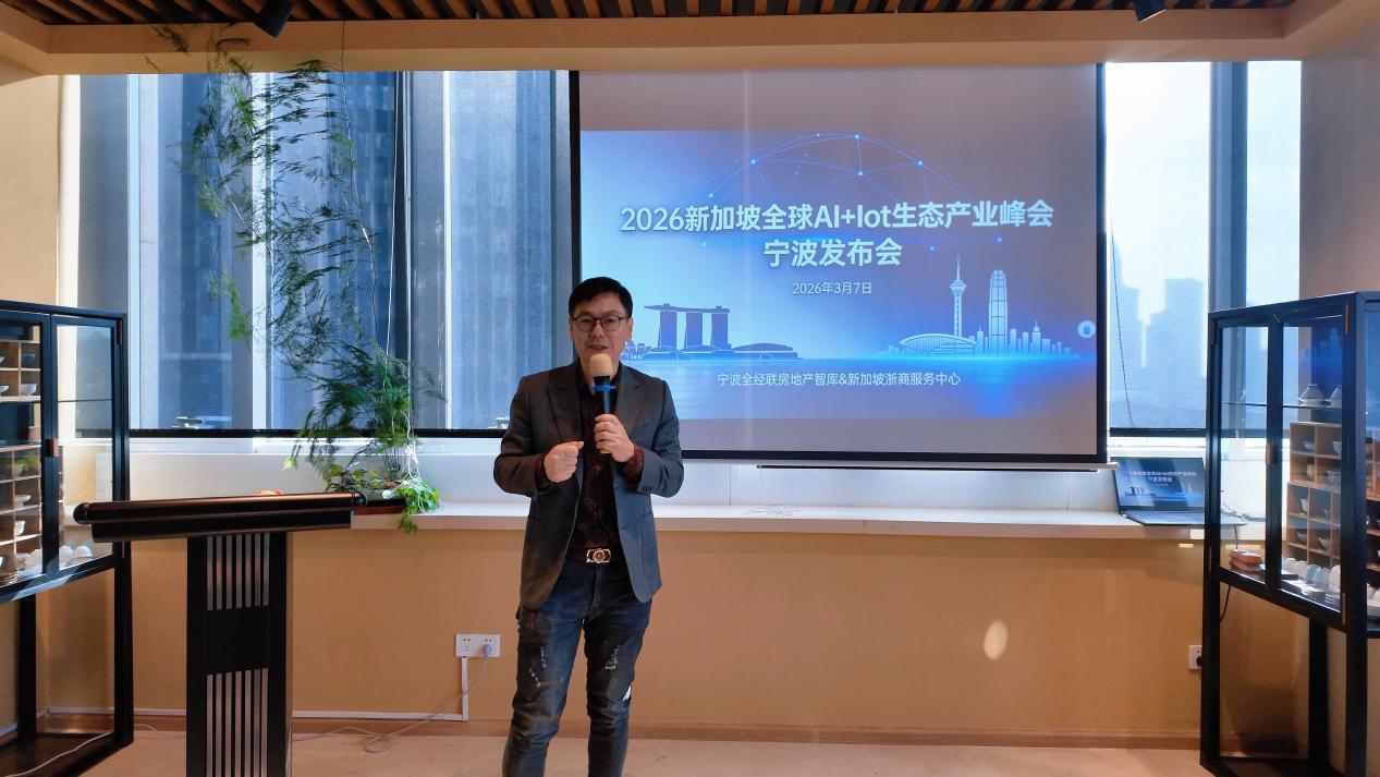 3月7日,由新加坡浙商服务中心与宁波全经联房地产智库联合举办的2026全球AI+IoT产业生态高峰论坛宁波发布会圆满举行。活动旨在深度解读即将举办的2026全球AI+IoT产业生态高峰论坛,搭建本土企业连接世界顶尖科技与市场的桥梁。